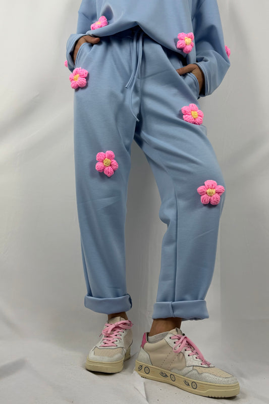Hose mit Häkelblumen & Kordelzug-Hell Blau