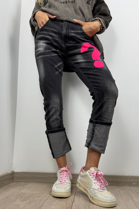 Jeans mit Fragezeichen-Print und moderner Waschung