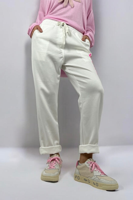 Hose mit elastischem Bund & Schriftzug „PSYCHO“-Weiß