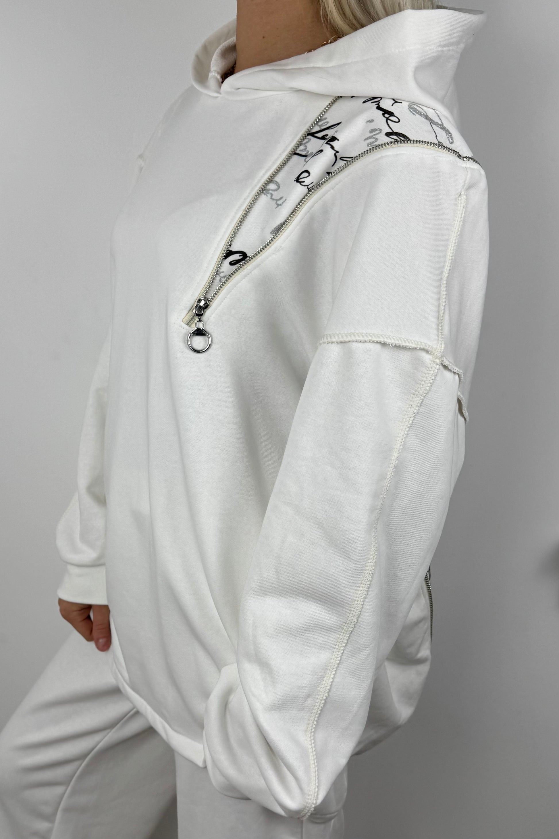 Asymmetrischer Hoodie mit Zipper –weiß