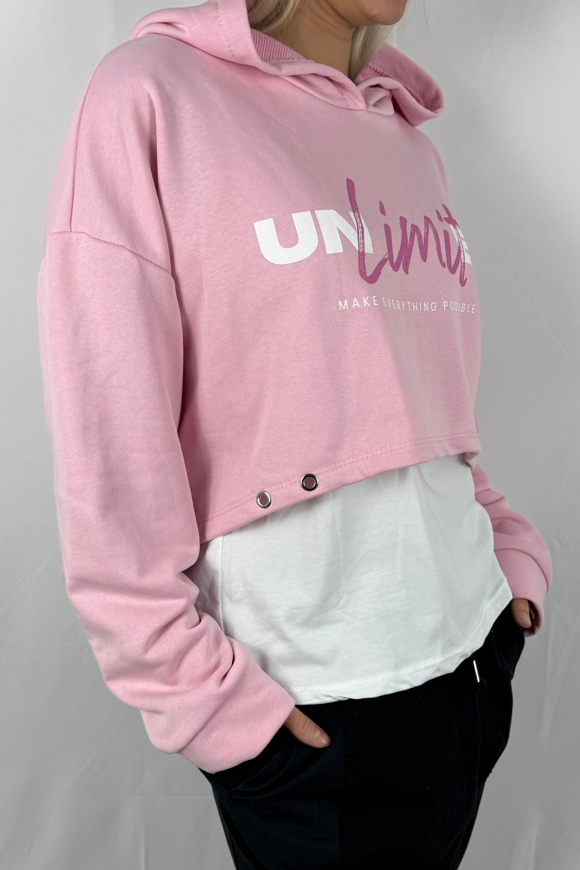 Cropped Hoodie „Unlimited – Make Everything Possible“-Rosa