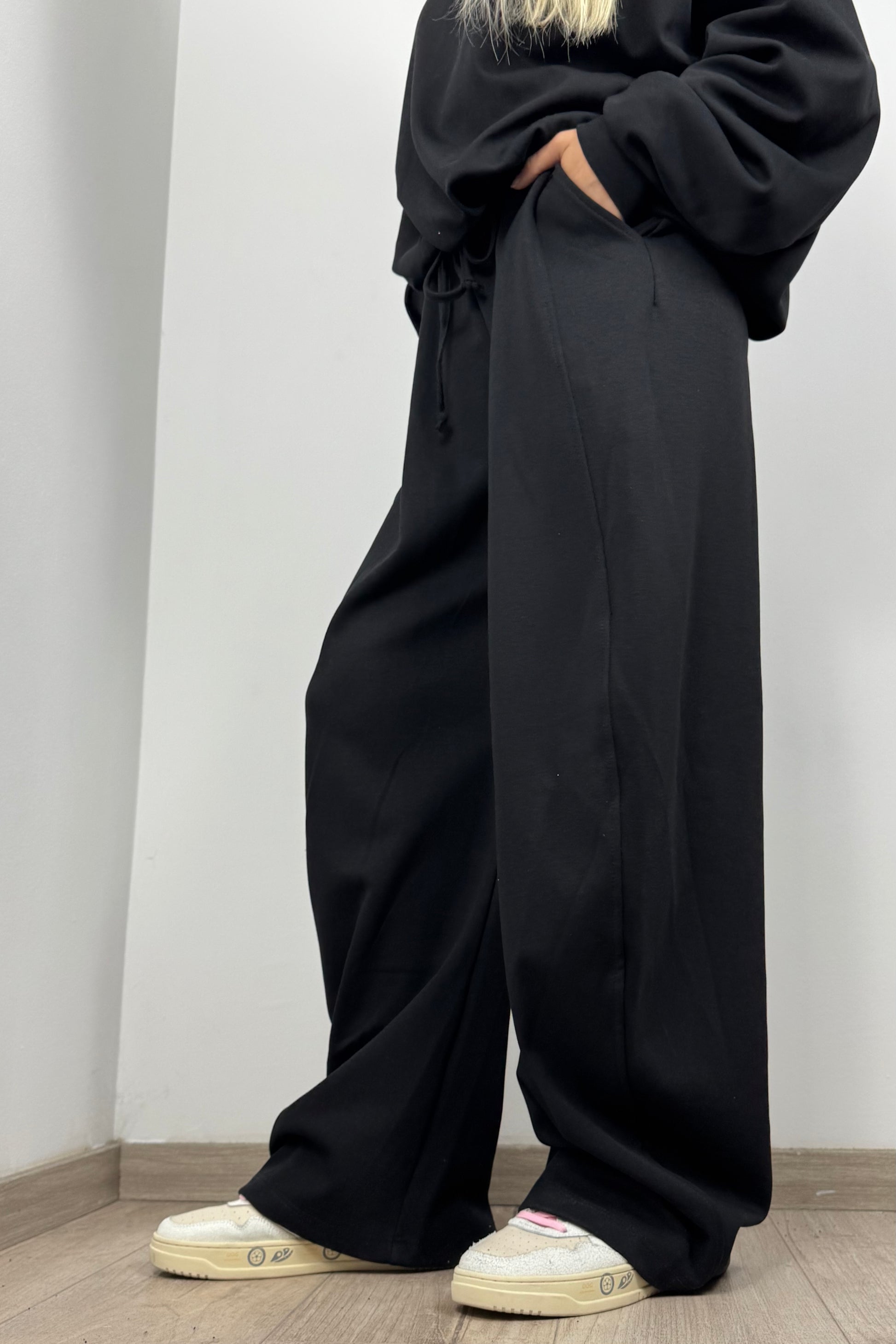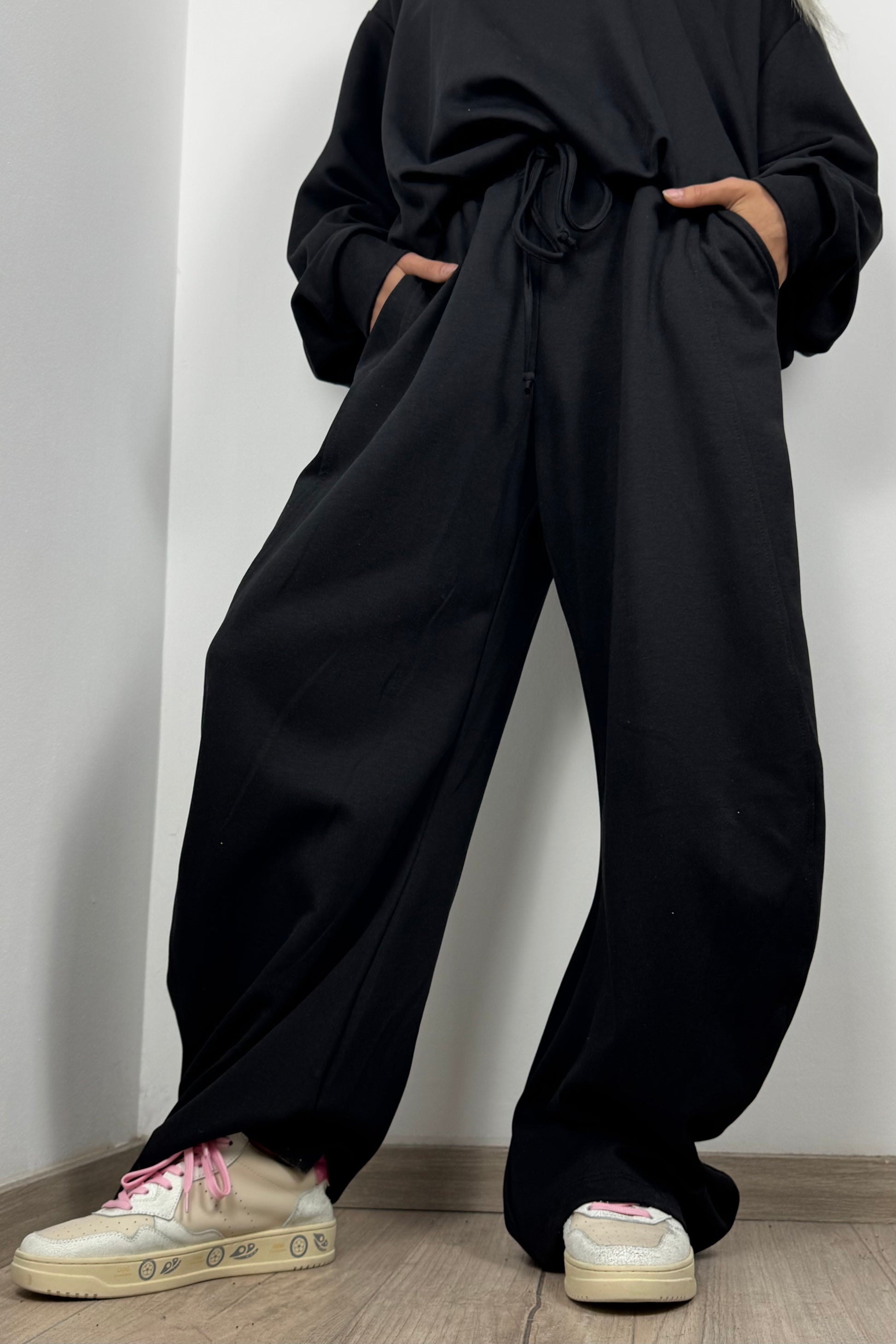 Damen Hose mit weitem Schnitt und Kordelzug-Schwarz