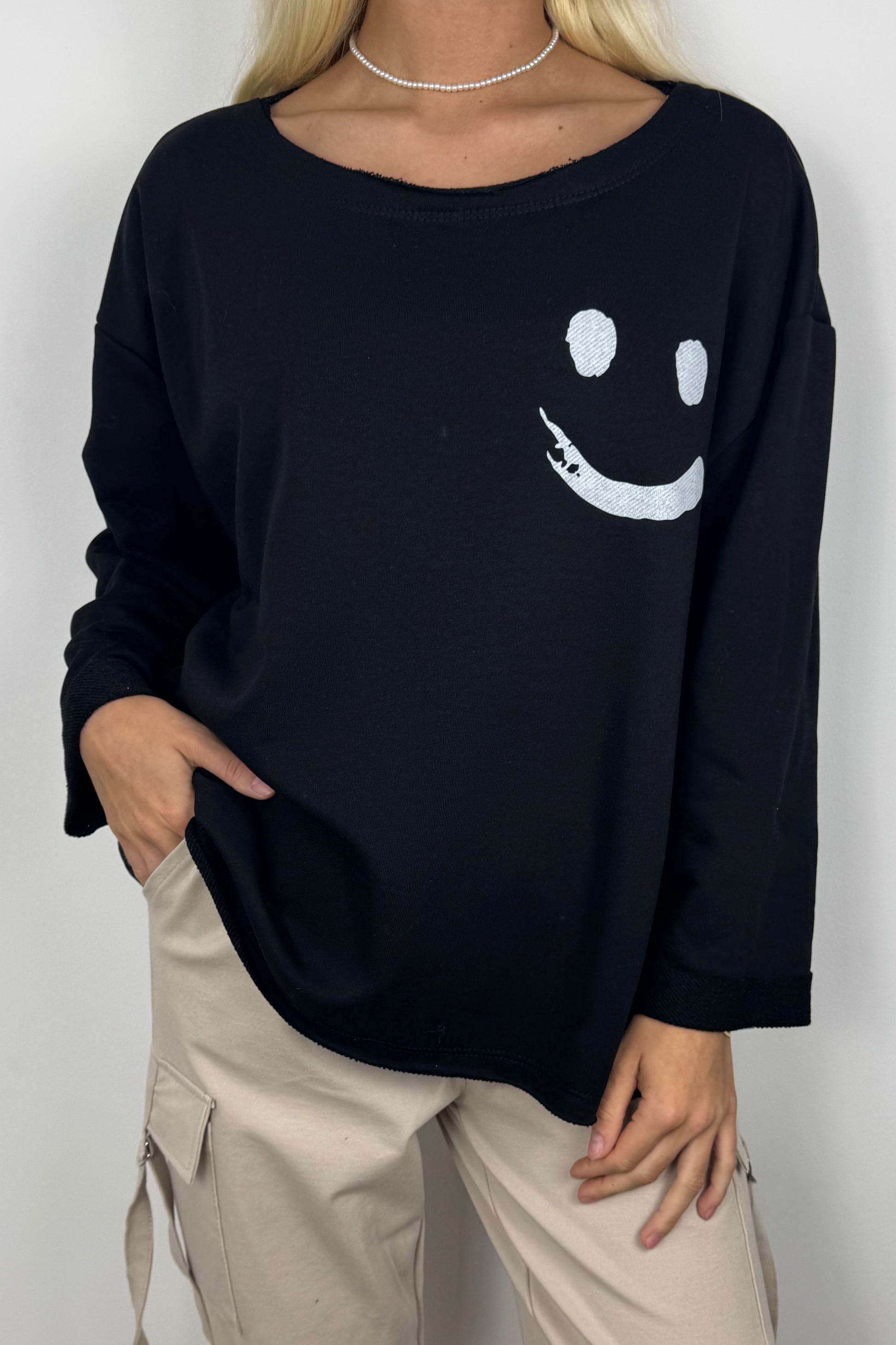 Damen Shirt mit Smiley-Print –Schwarz