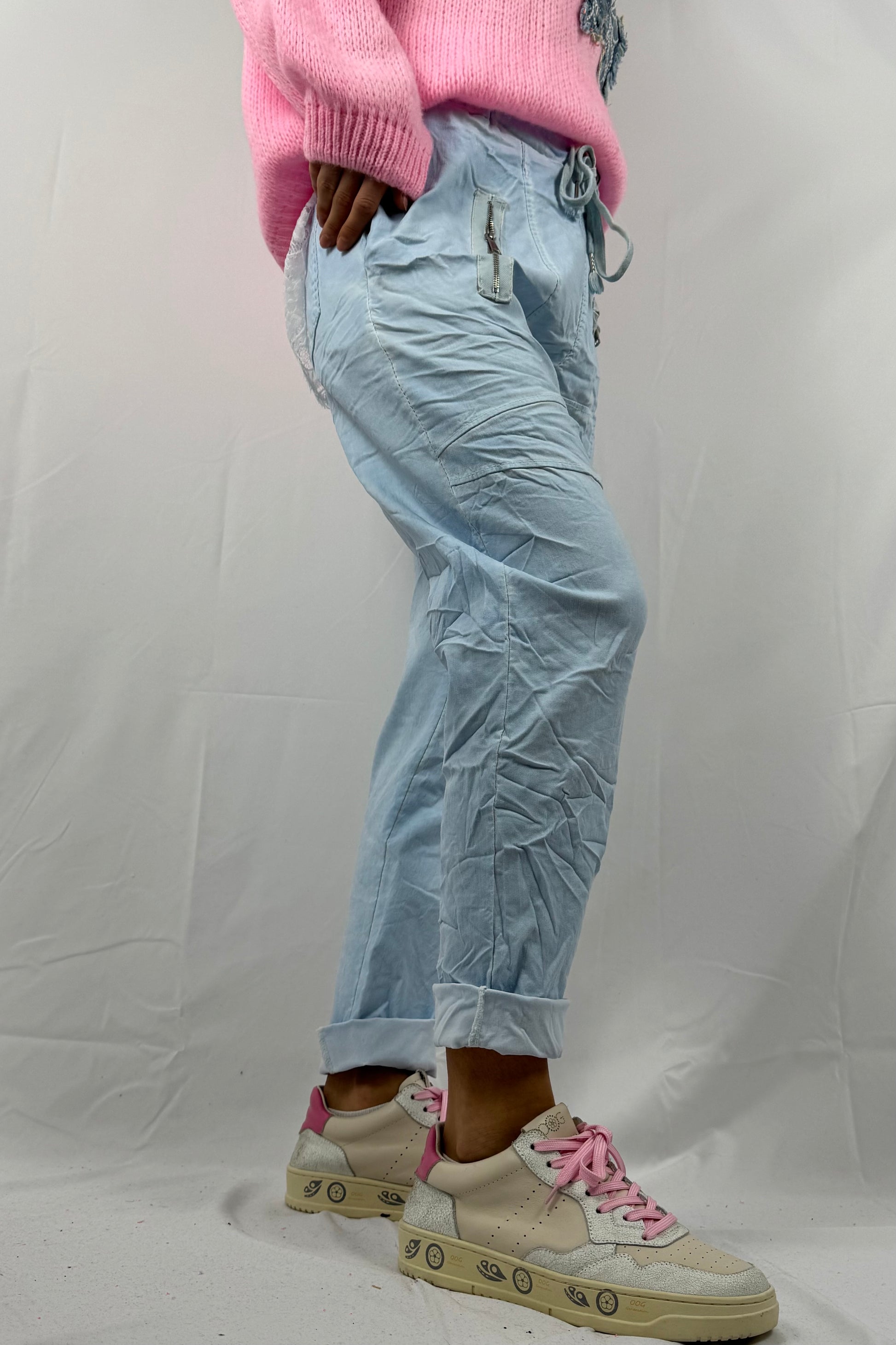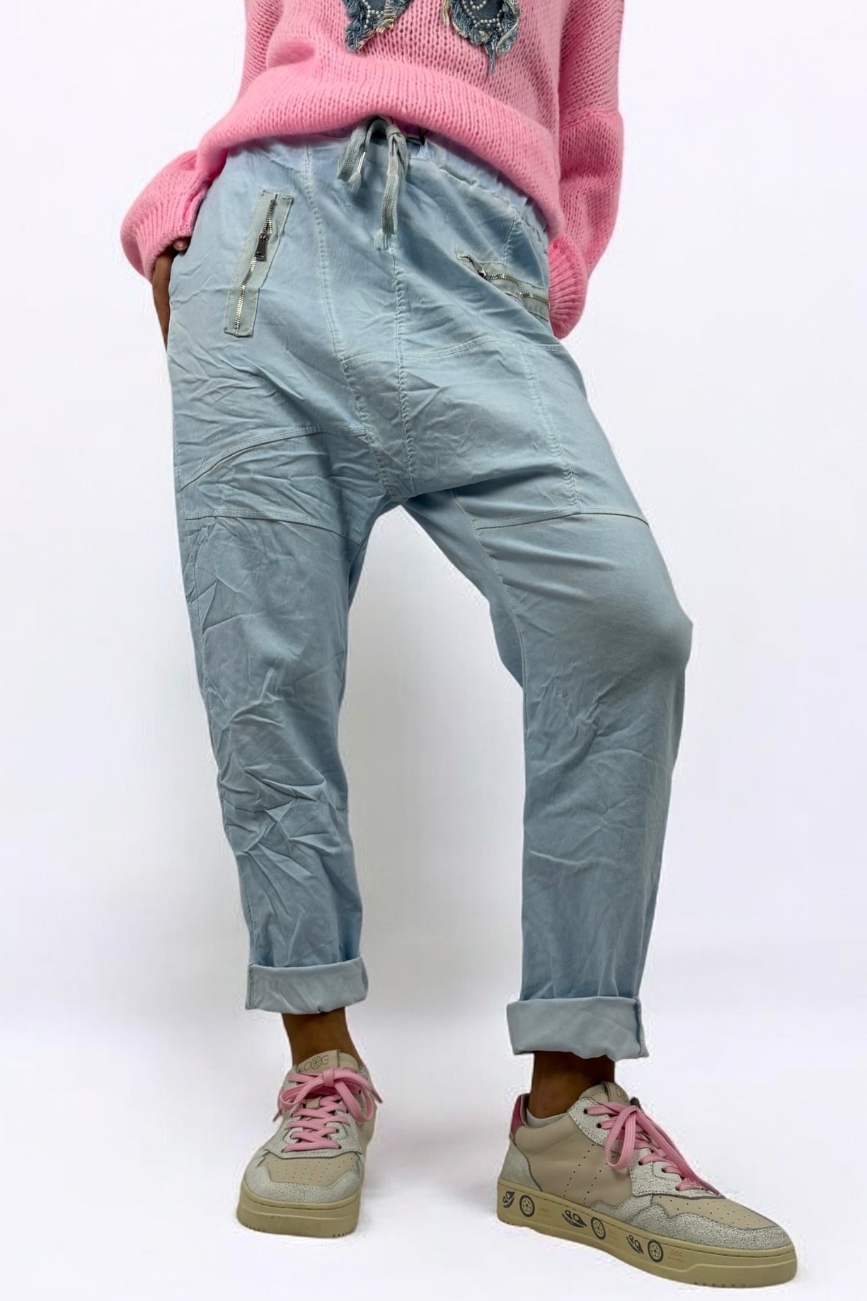 Hose mit elastischem Bund & Reißverschlusstaschen-Hellblau