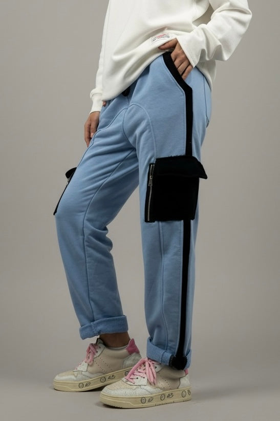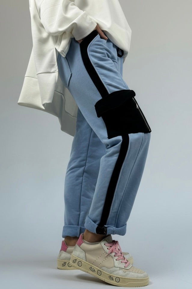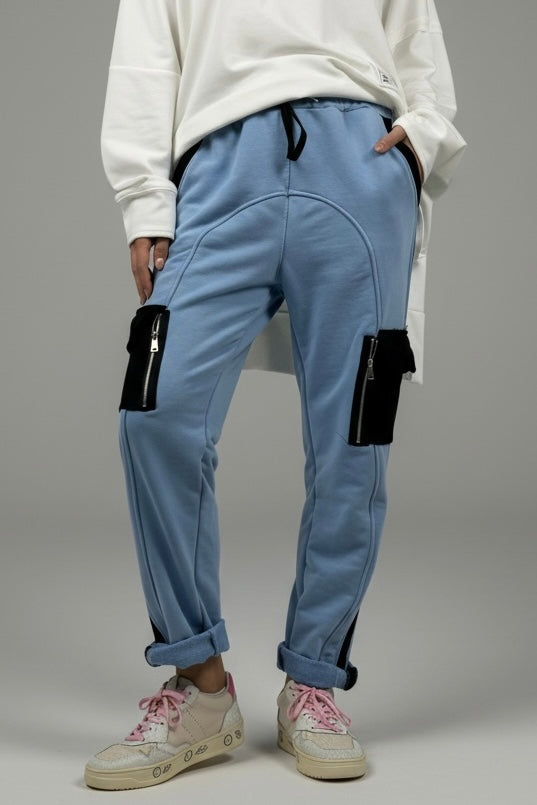 Hose mit Kontrastdetails & Reißverschlusstaschen-Hellblau