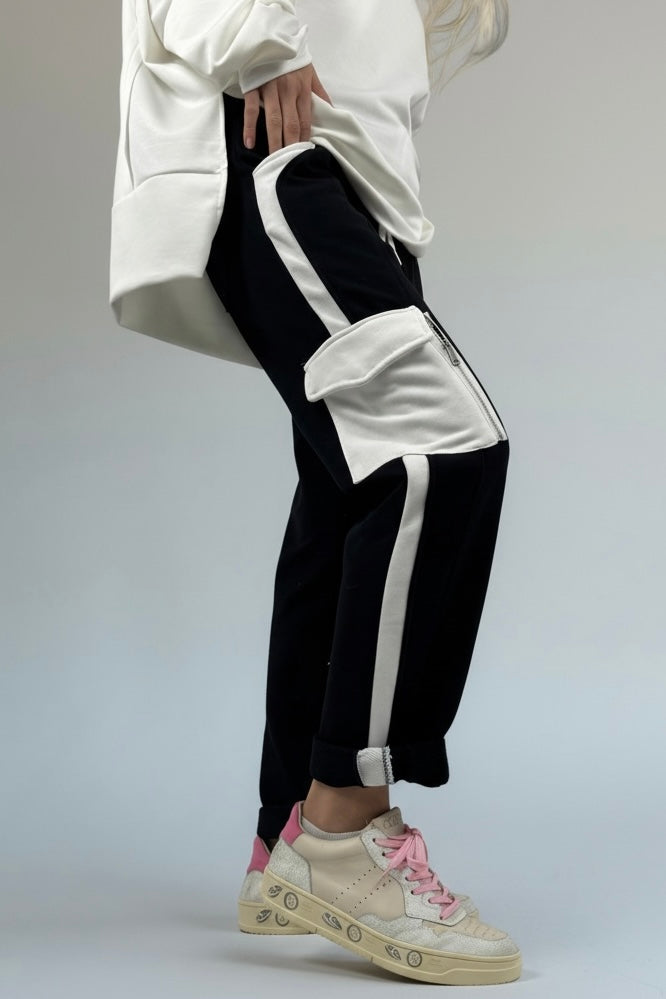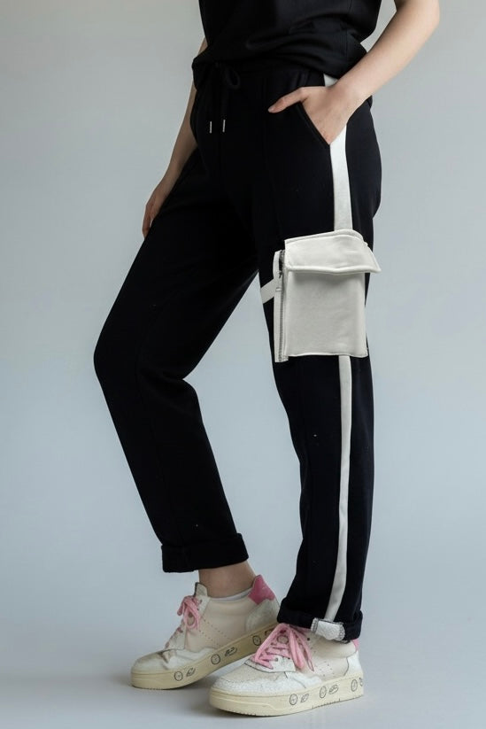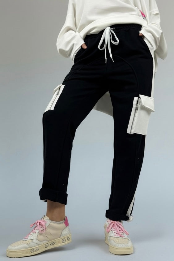 Hose mit Kontrastdetails & Reißverschlusstaschen-Schwarz