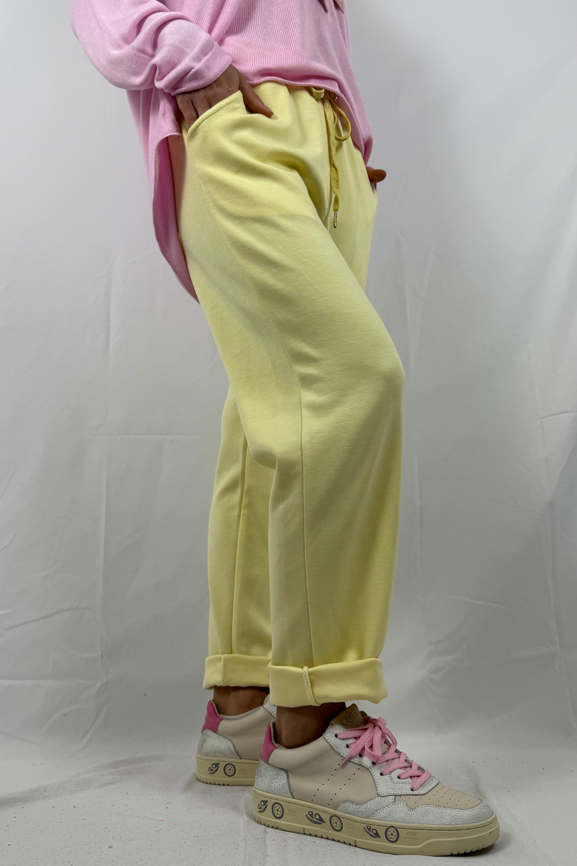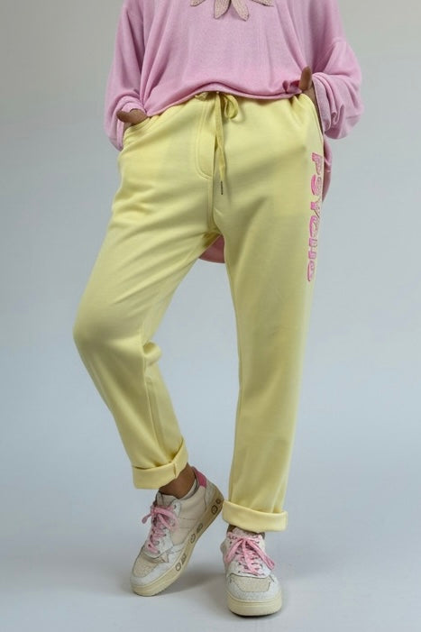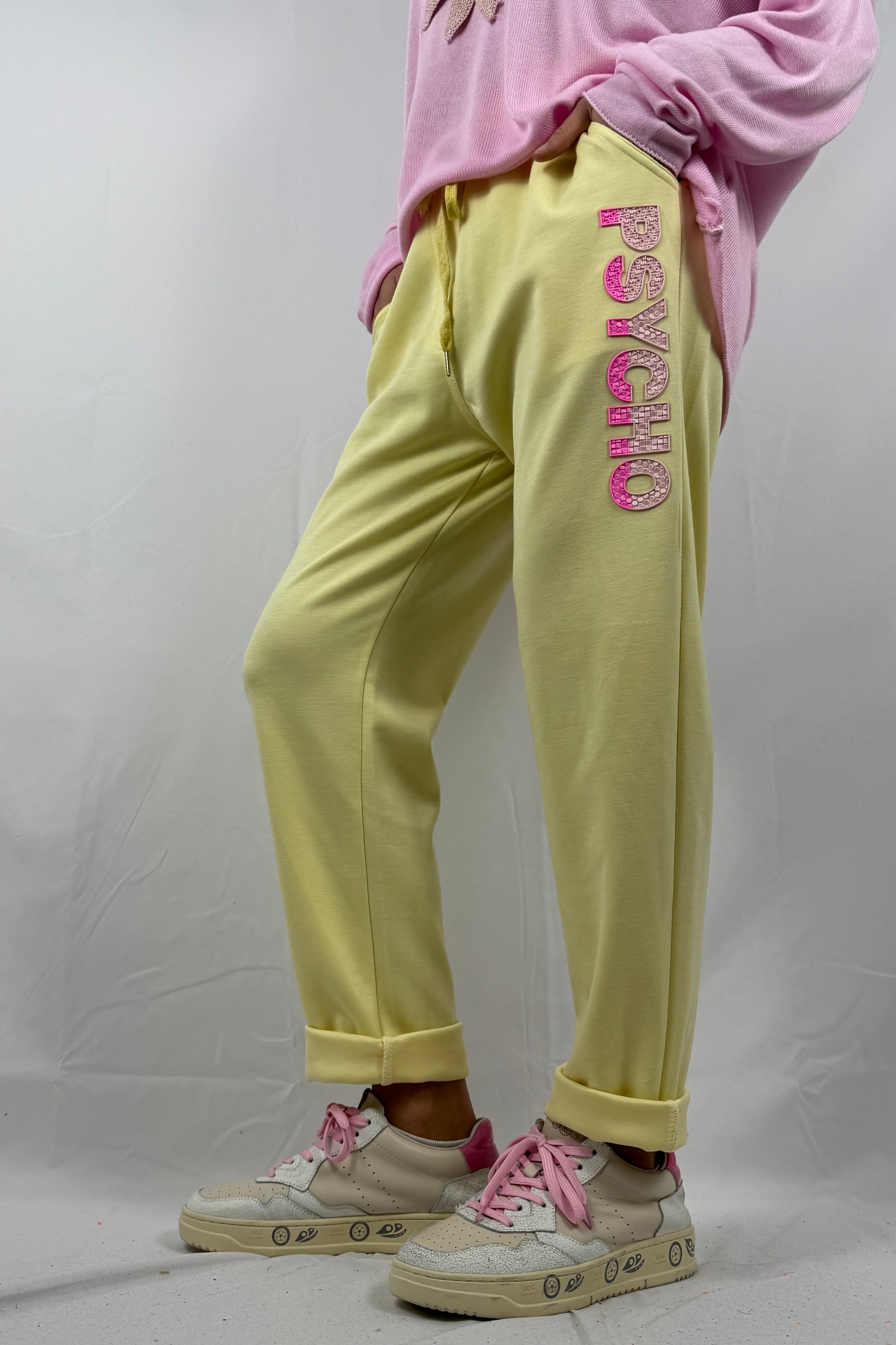 Hose mit elastischem Bund & Schriftzug „PSYCHO“-Gelb