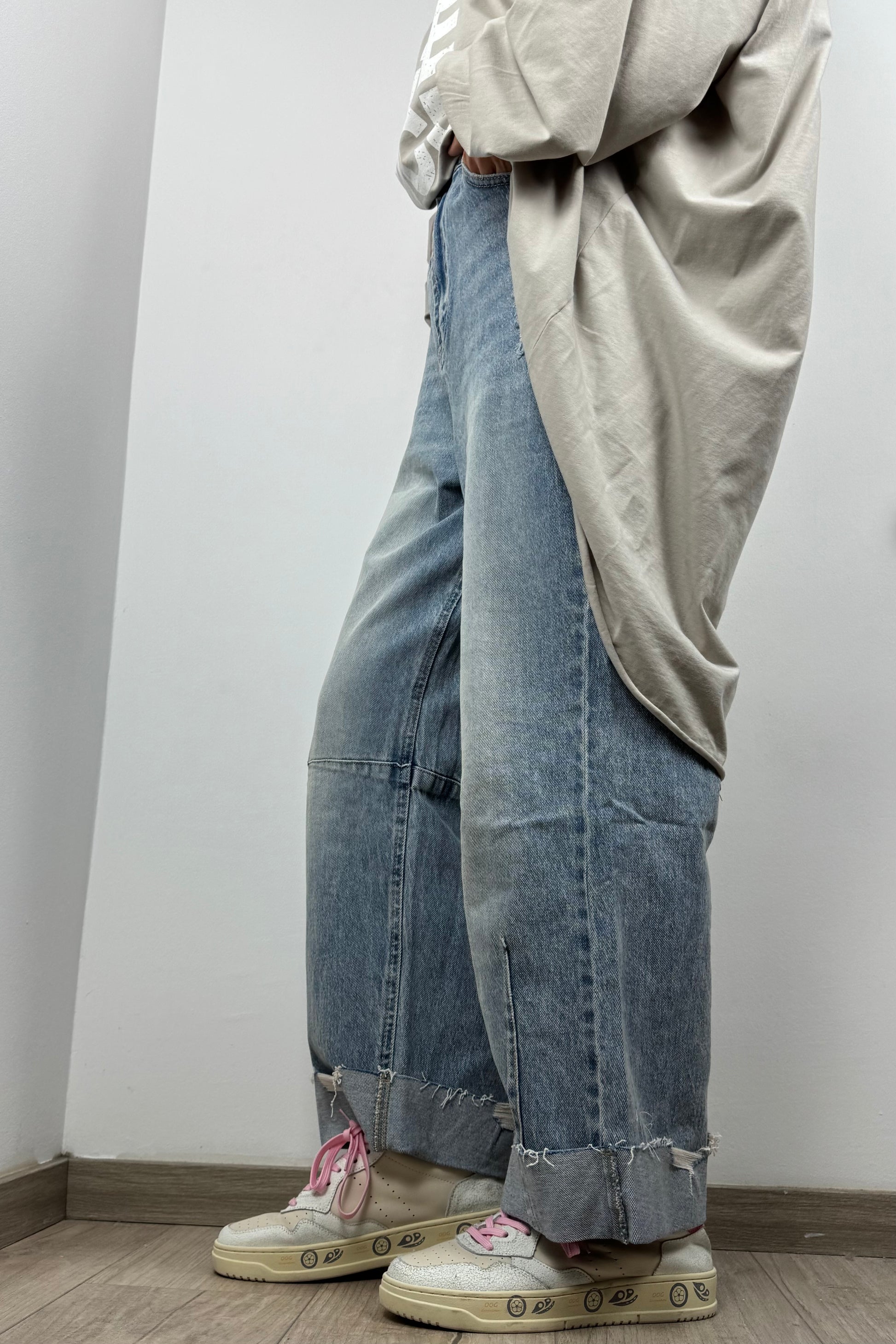 Baggy-Jeans mit Glanzschrift „Made with Love“ und Metallic-Details