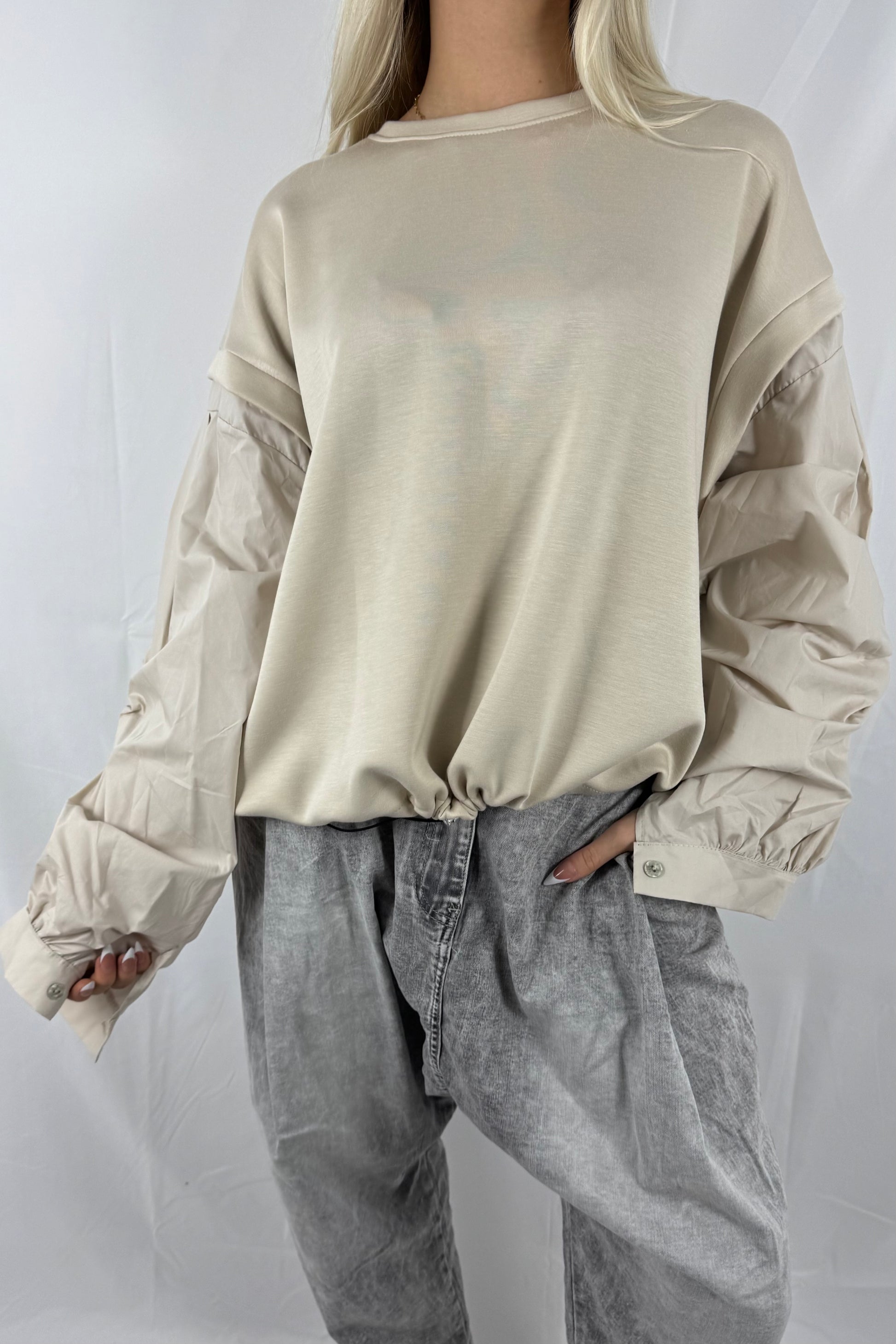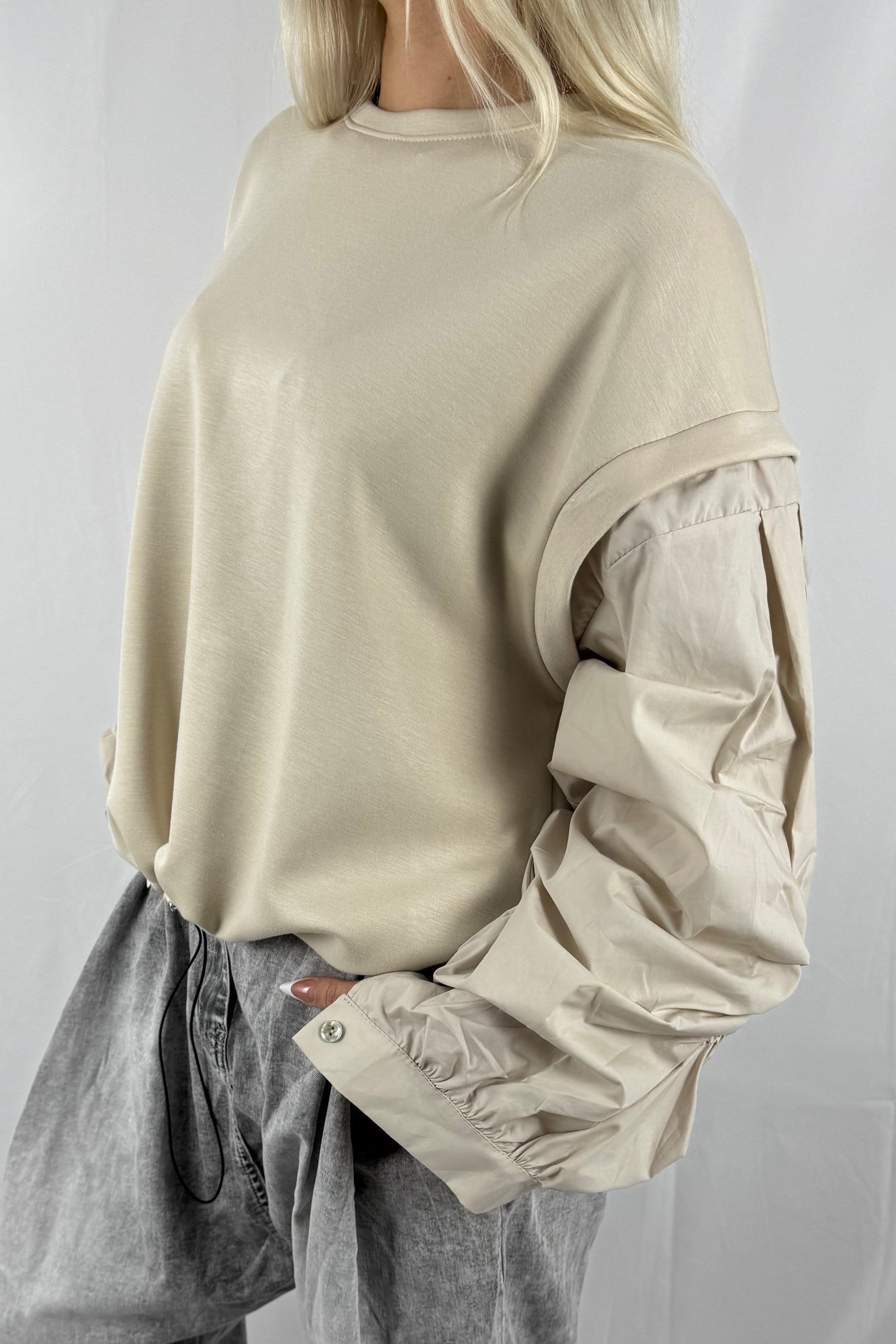 Oversize Sweatshirt mit Volumenärmeln & Tunnelzug –Beige