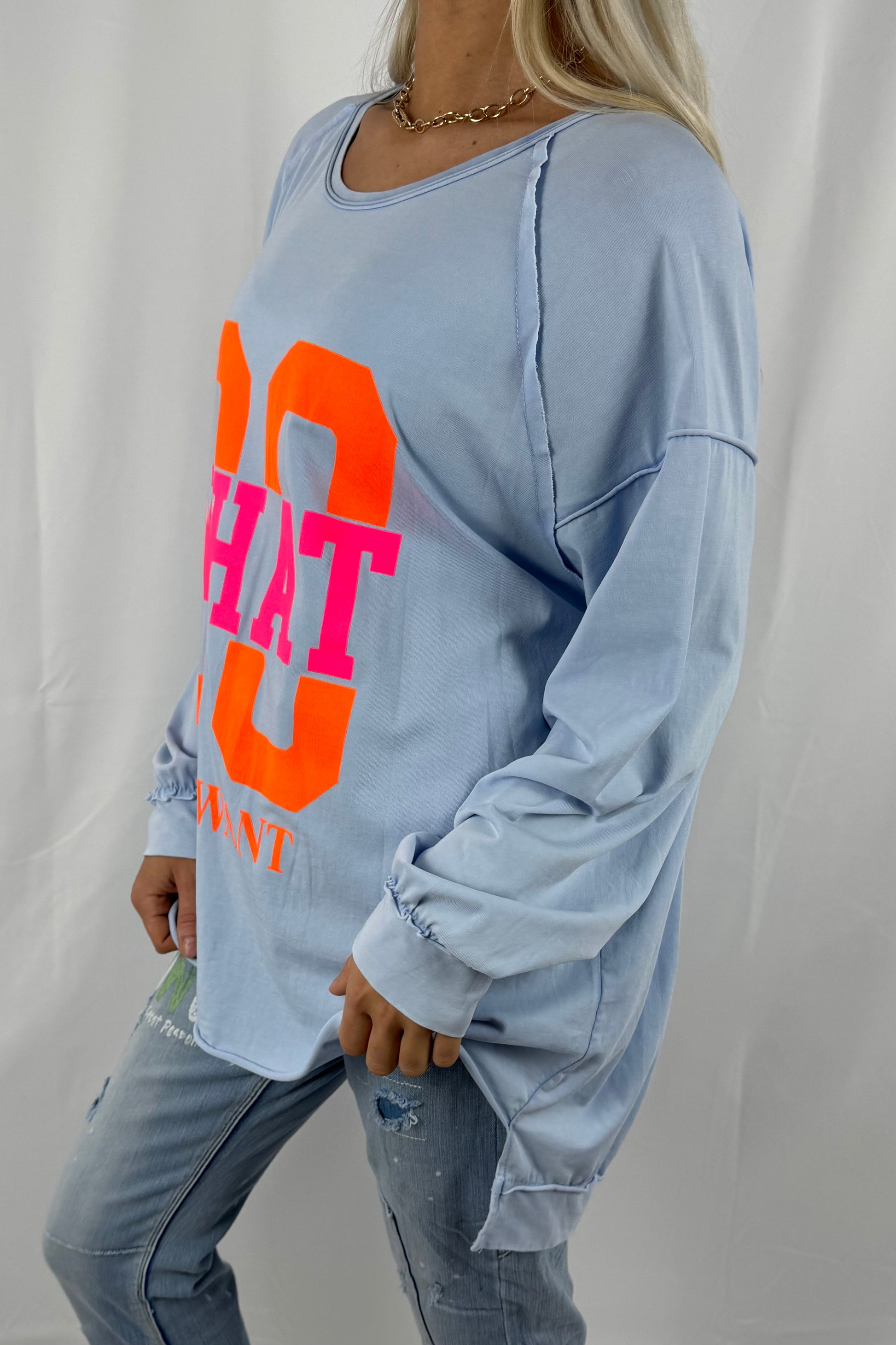 Shirt mit „DO WHAT YOU WANT“ Statement-Print-Hell Blau