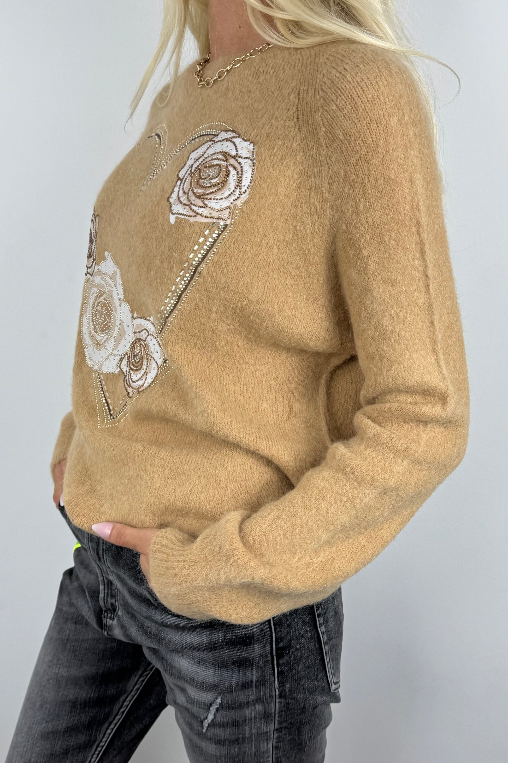 Pullover mit Herz- und Rosen-Design-Cammel
