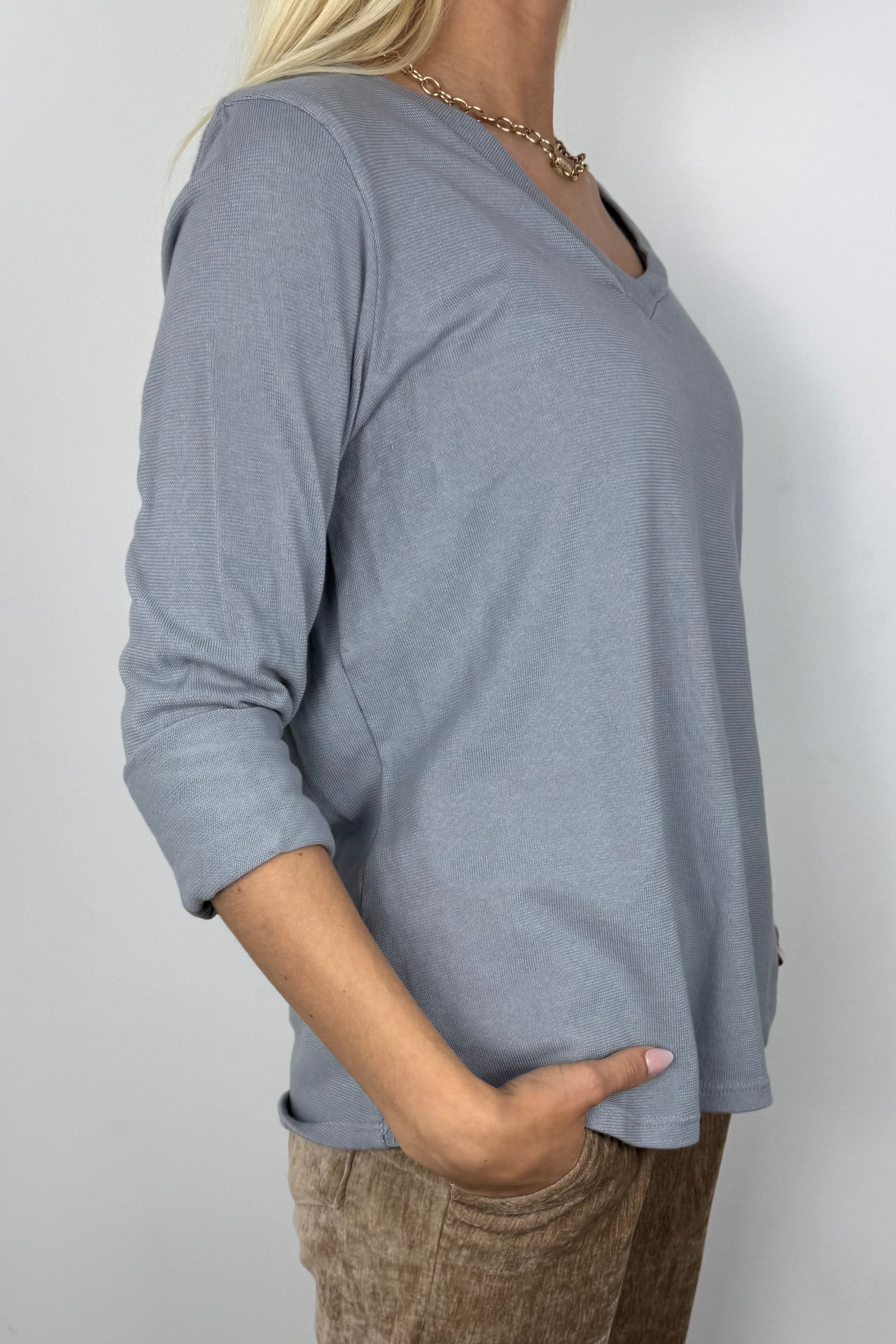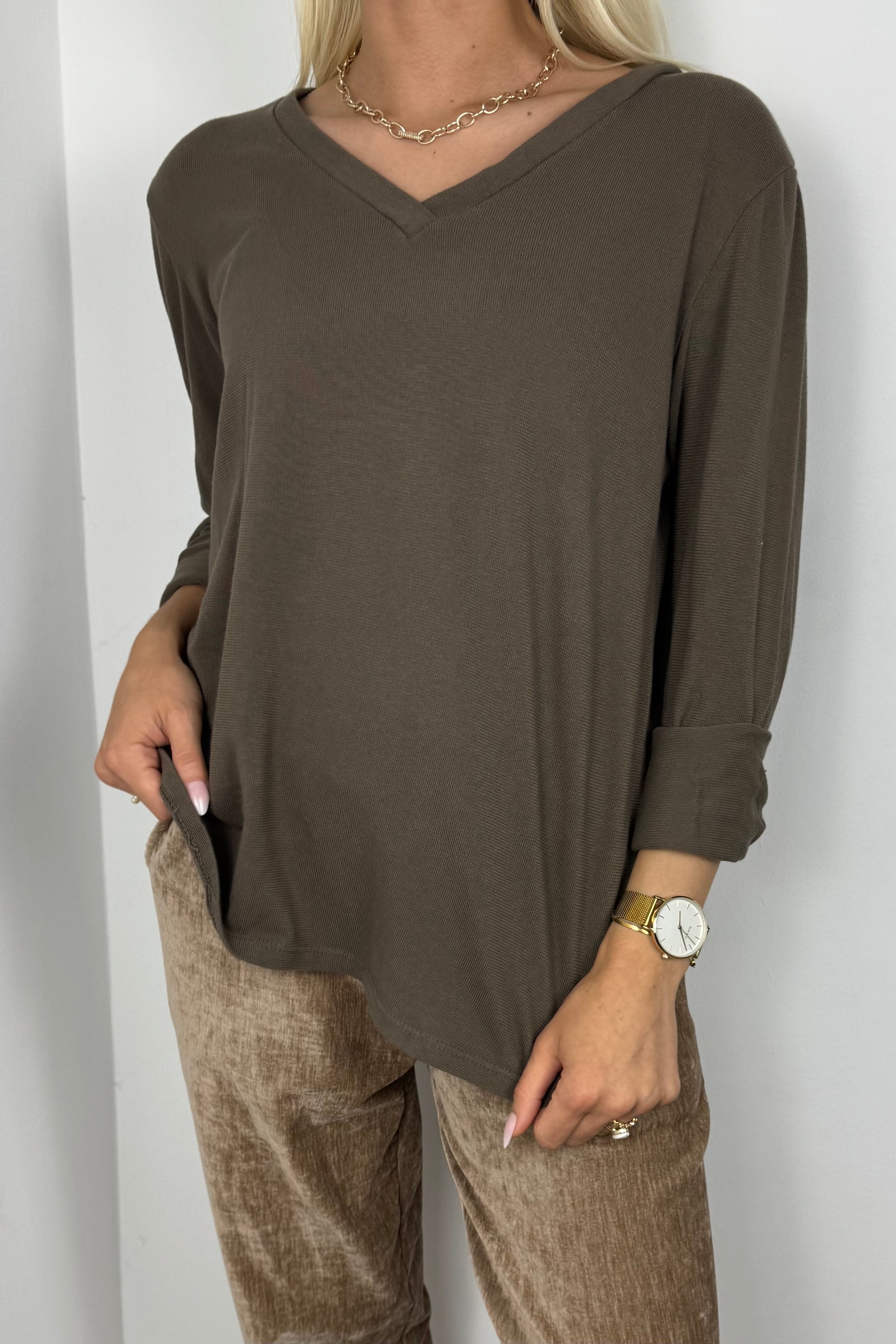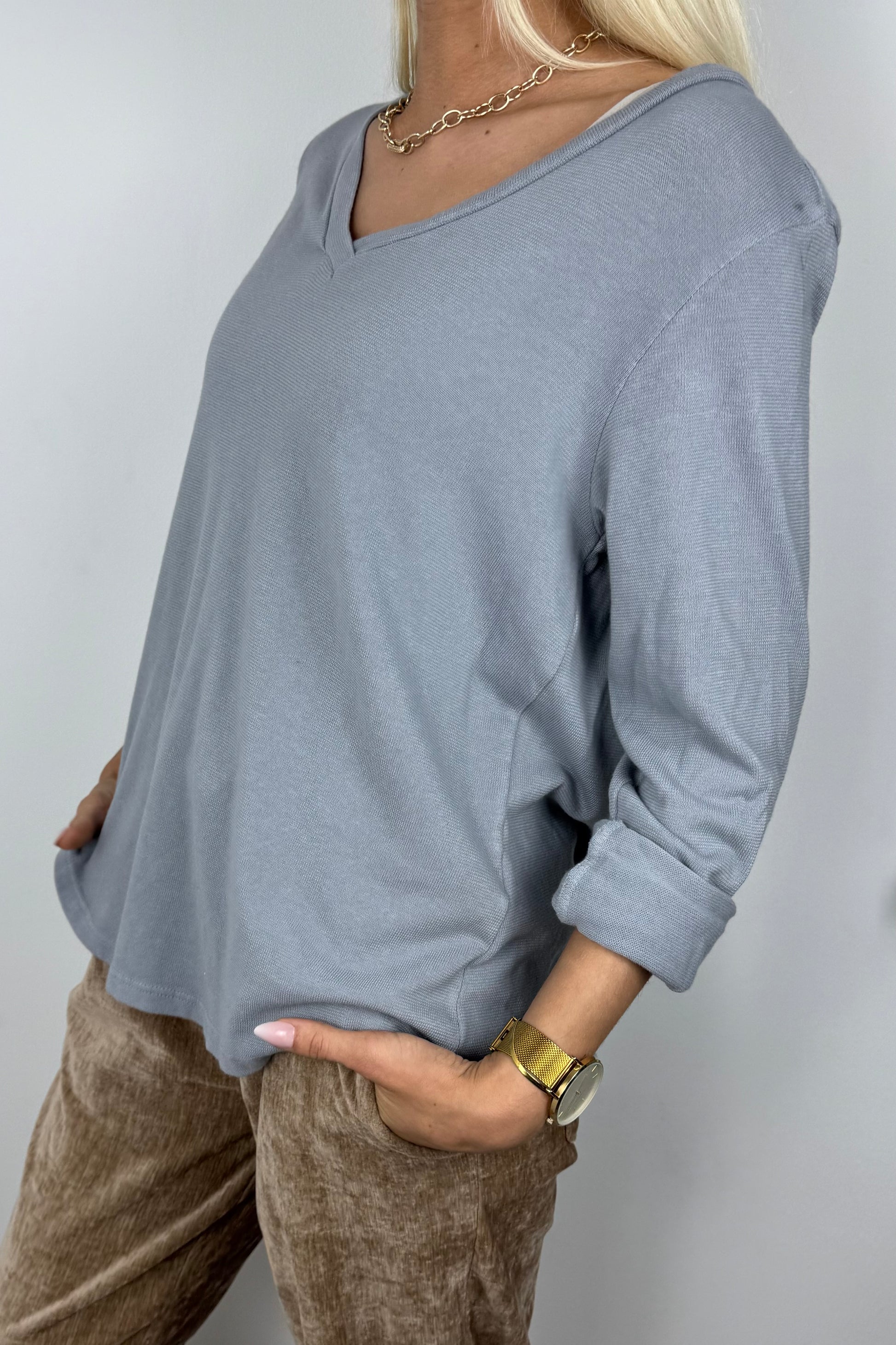 Dieses Shirt überzeugt mit einem klassischen V-Ausschnitt und einem lockeren Schnitt, der für ein angenehmes Tragegefühl sorgt. Die hochgekrempelten Ärmel verleihen dem Oberteil eine lässige Note, während das zeitlose Design vielseitig kombinierbar bleibt. Ob zu Jeans, Stoffhosen oder Röcken – dieses Shirt lässt sich flexibel stylen und ist sowohl im Alltag als auch in der Freizeit ein zuverlässiger Begleiter. Dank des weichen Materials bietet es hohen Komfort und ist ideal für alle, die Wert auf ein unkompliziertes, modernes Basic legen.