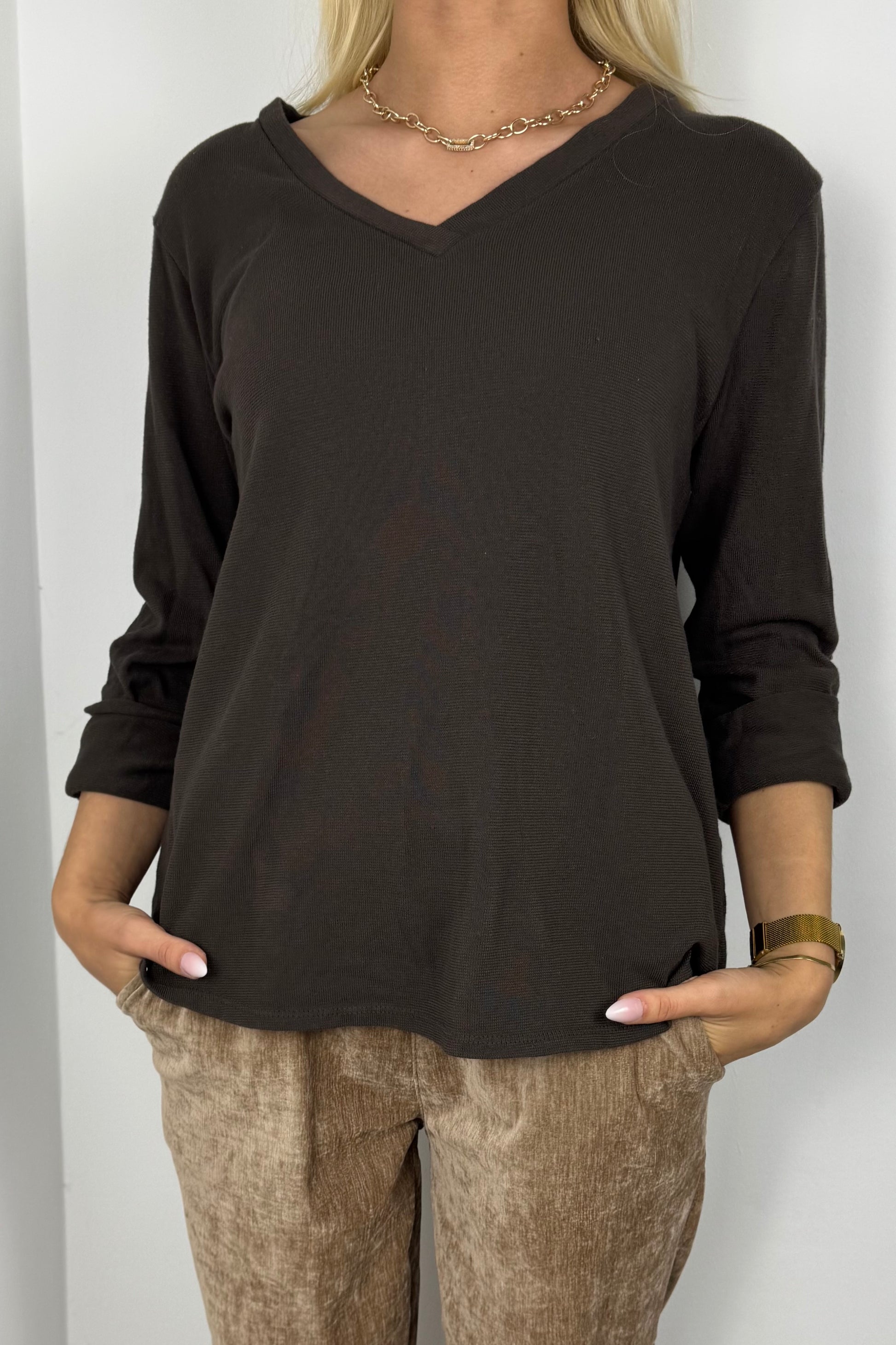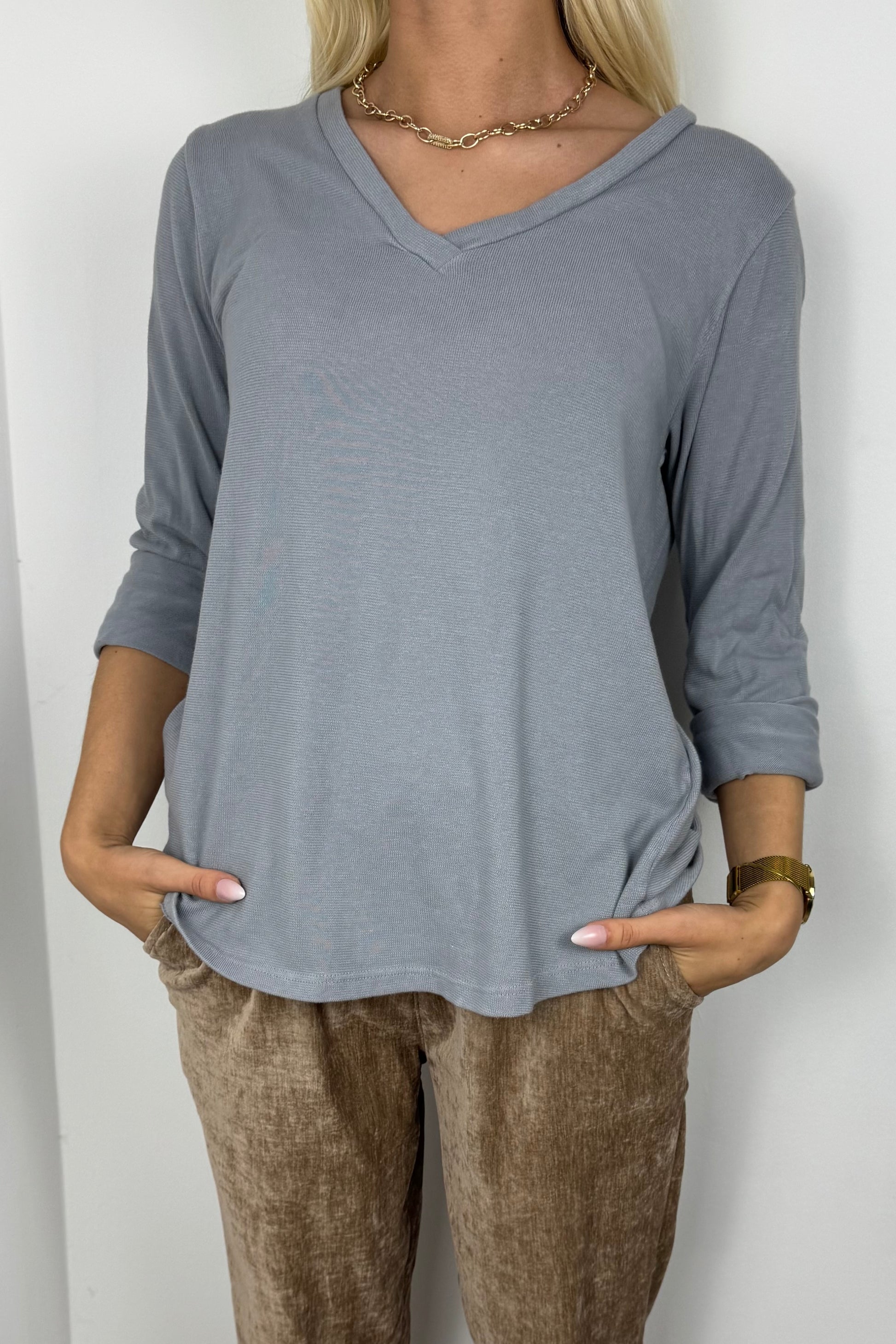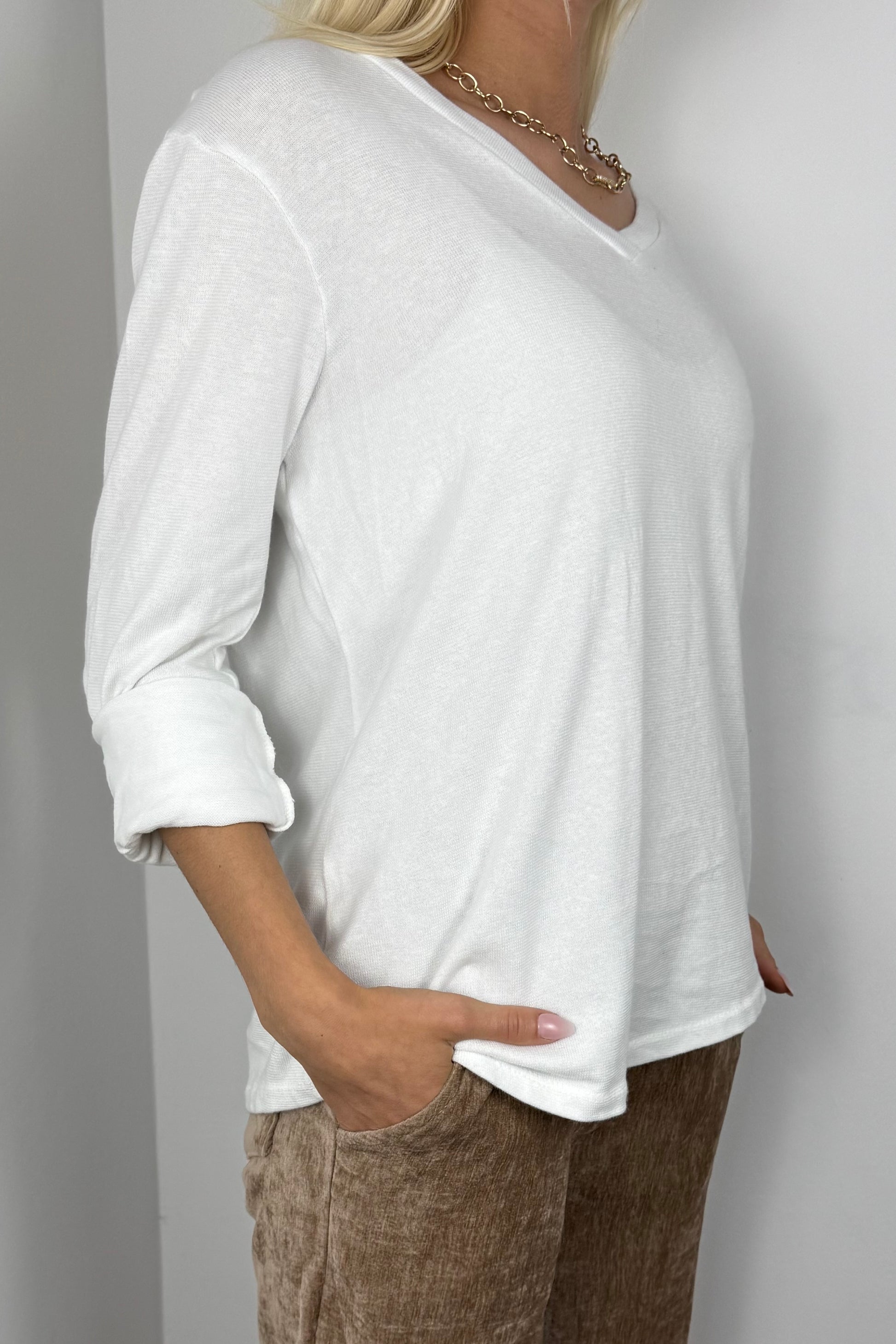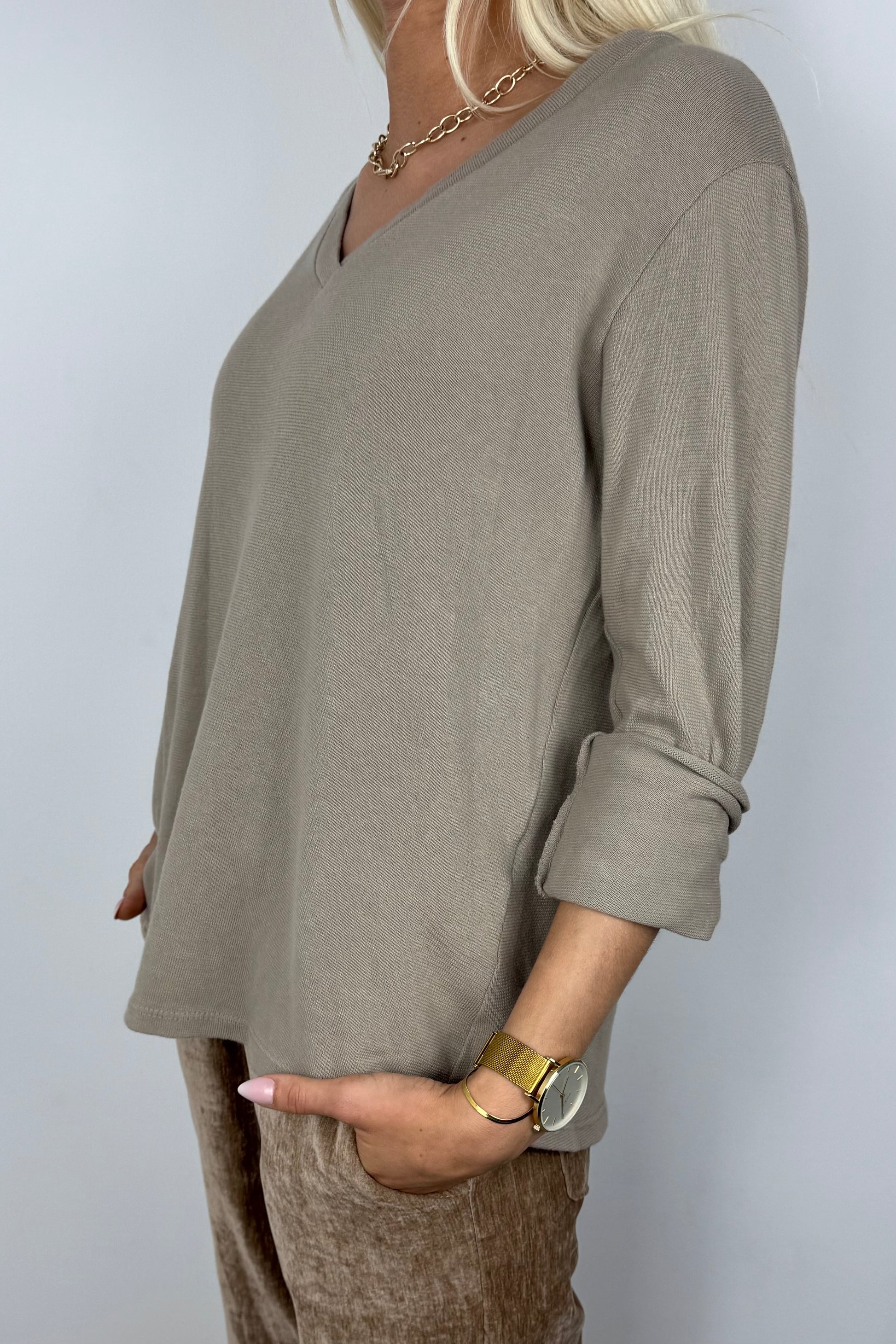 Dieses Shirt überzeugt mit einem klassischen V-Ausschnitt und einem lockeren Schnitt, der für ein angenehmes Tragegefühl sorgt. Die hochgekrempelten Ärmel verleihen dem Oberteil eine lässige Note, während das zeitlose Design vielseitig kombinierbar bleibt. Ob zu Jeans, Stoffhosen oder Röcken – dieses Shirt lässt sich flexibel stylen und ist sowohl im Alltag als auch in der Freizeit ein zuverlässiger Begleiter. Dank des weichen Materials bietet es hohen Komfort und ist ideal für alle, die Wert auf ein unkompliziertes, modernes Basic legen.