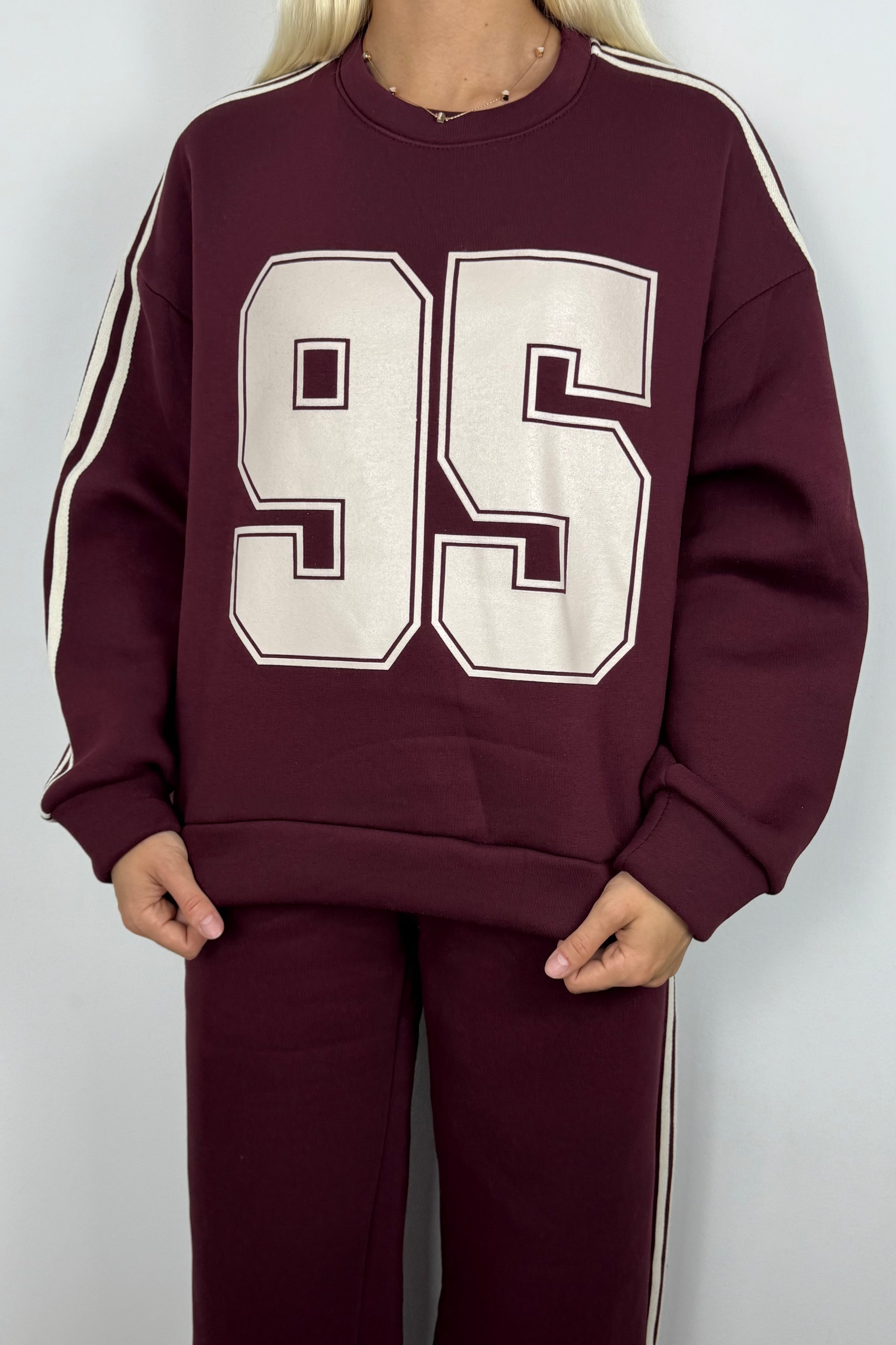 Trendiger Oversize-Sweater mit Print „95“ –Bordeux