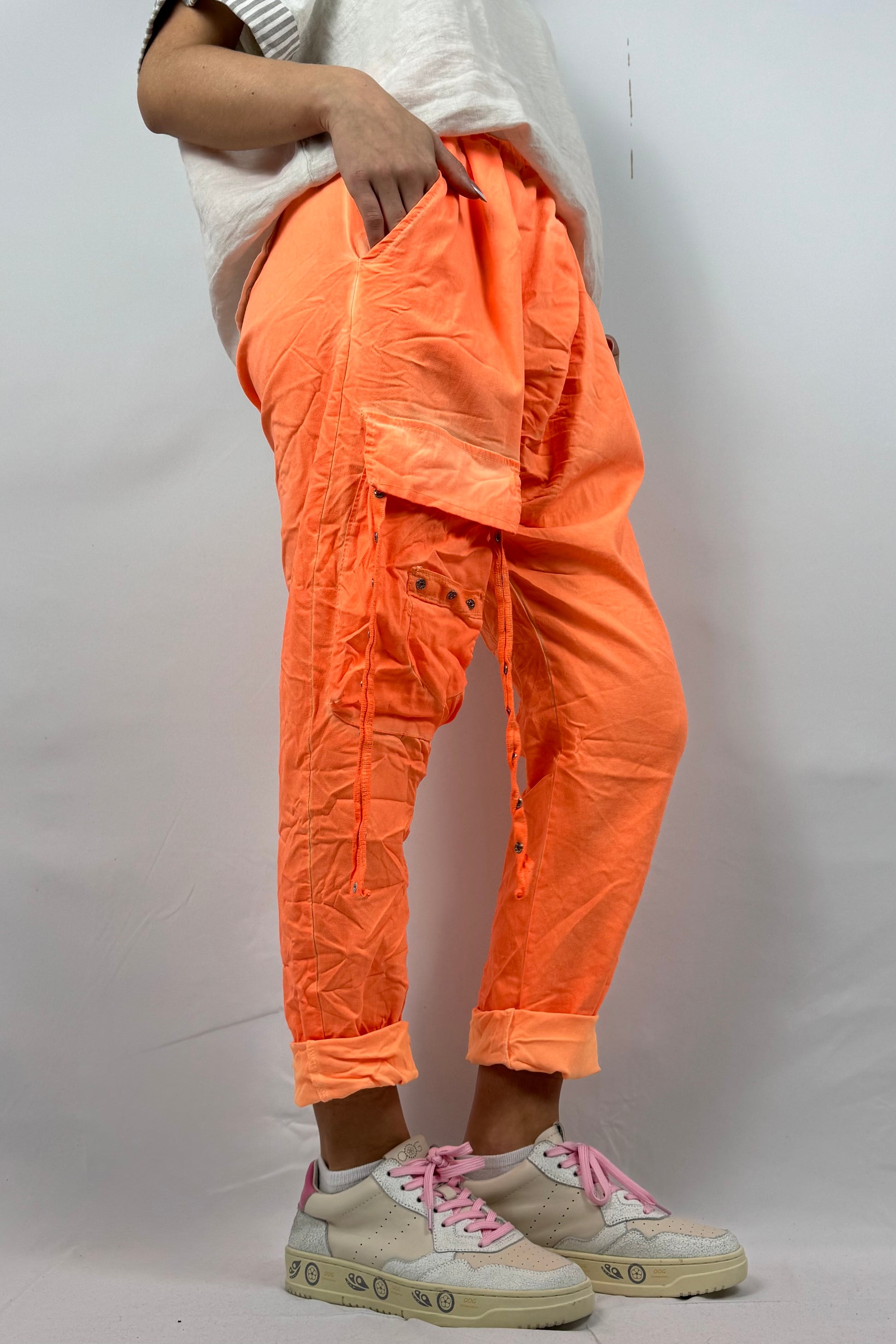 Cargo Hose mit Taschen & Knopfdetails-Neon Orange
