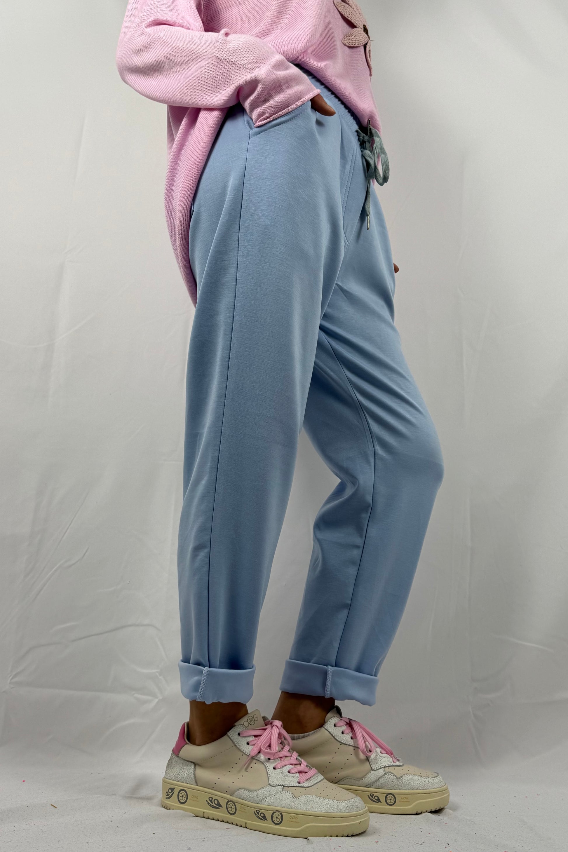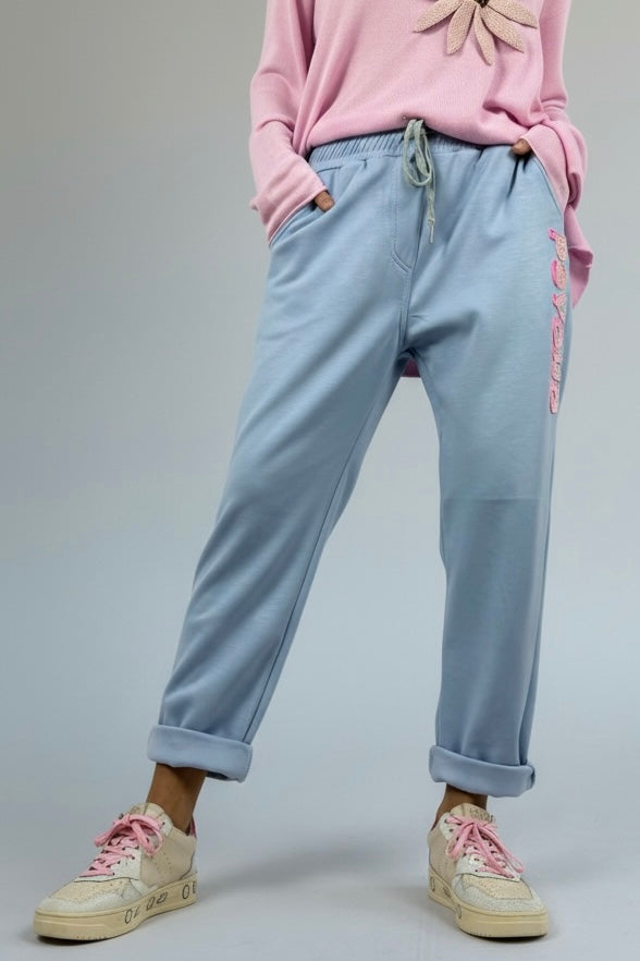 Hose mit elastischem Bund & Schriftzug „PSYCHO“-Hellblau