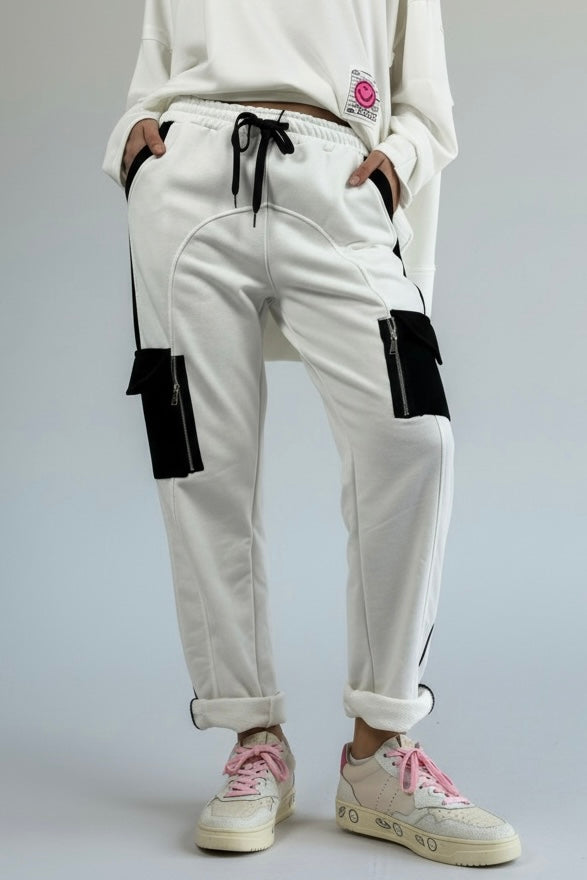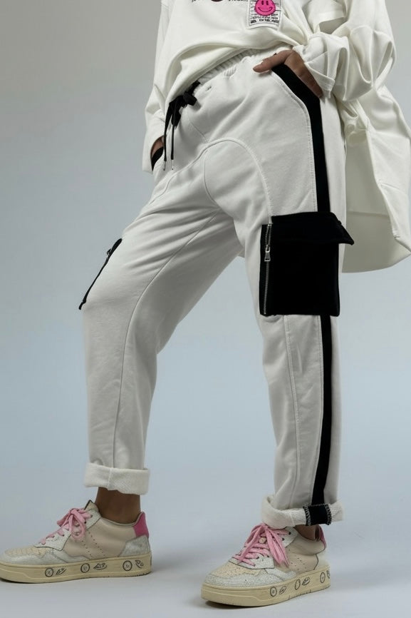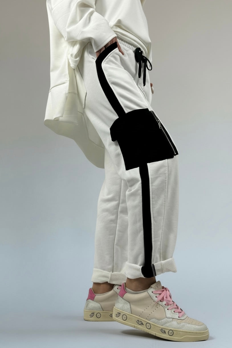 Hose mit Kontrastdetails & Reißverschlusstaschen -Weiß