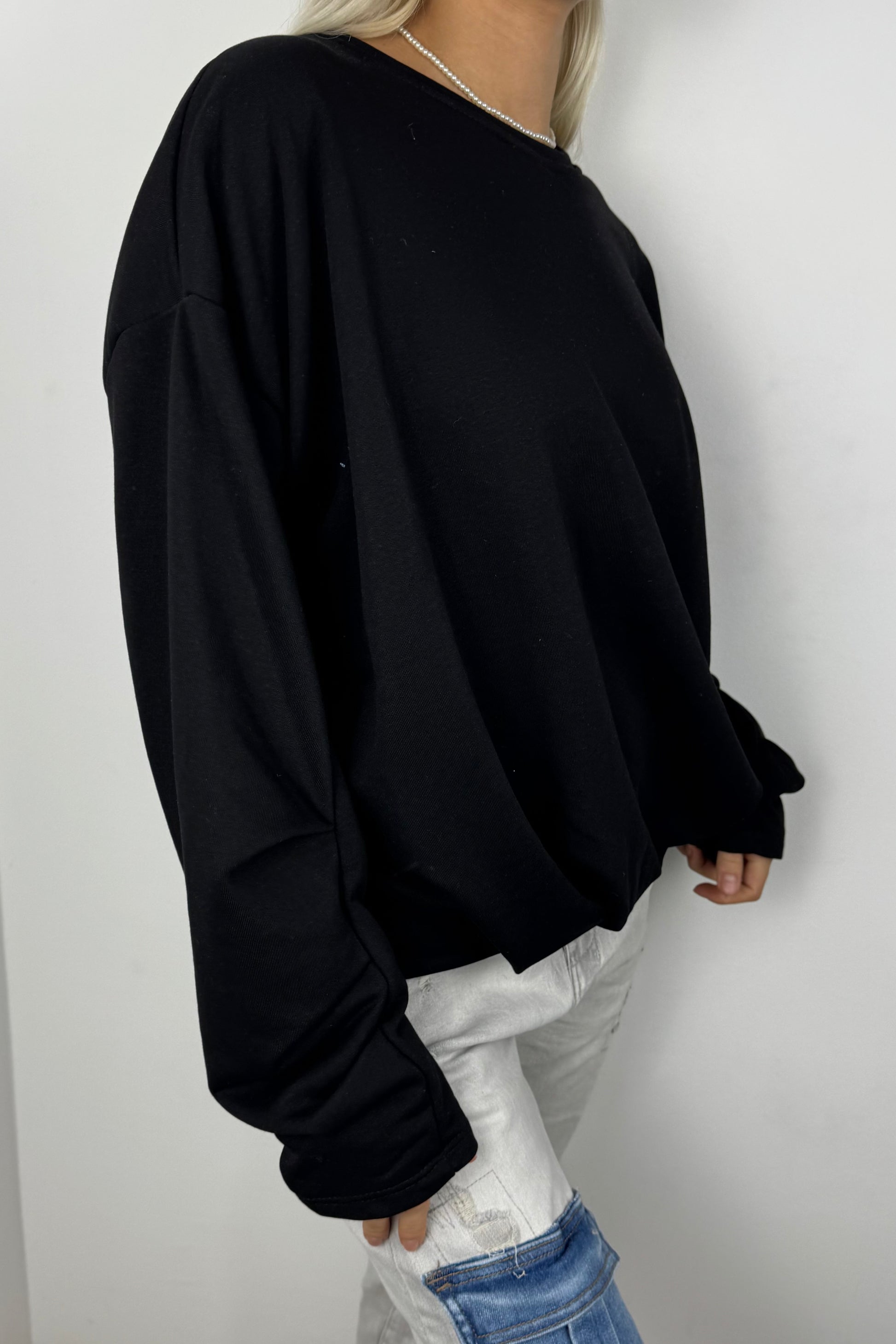 Oversize Sweatshirt mit Faltendetail –Schwarz