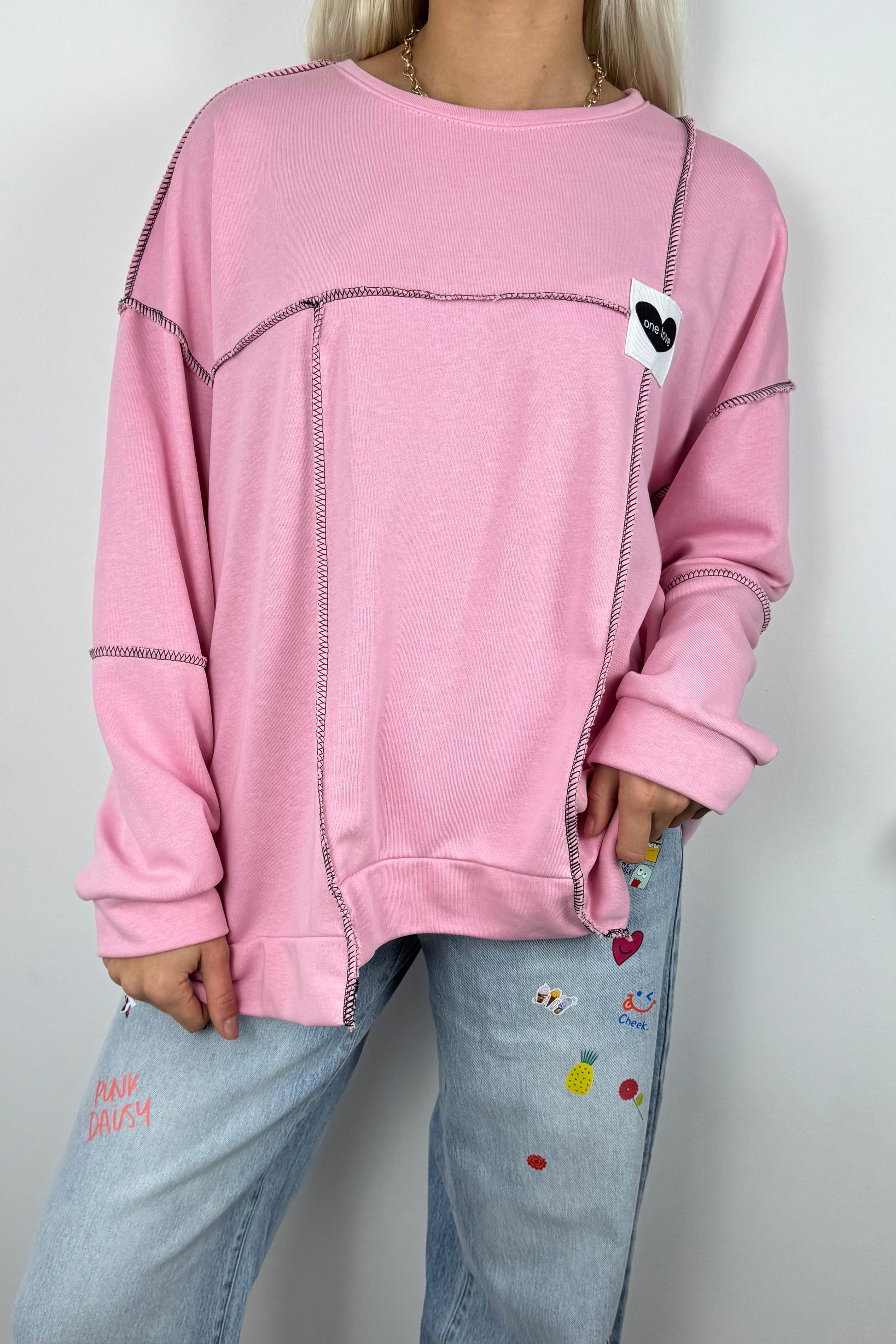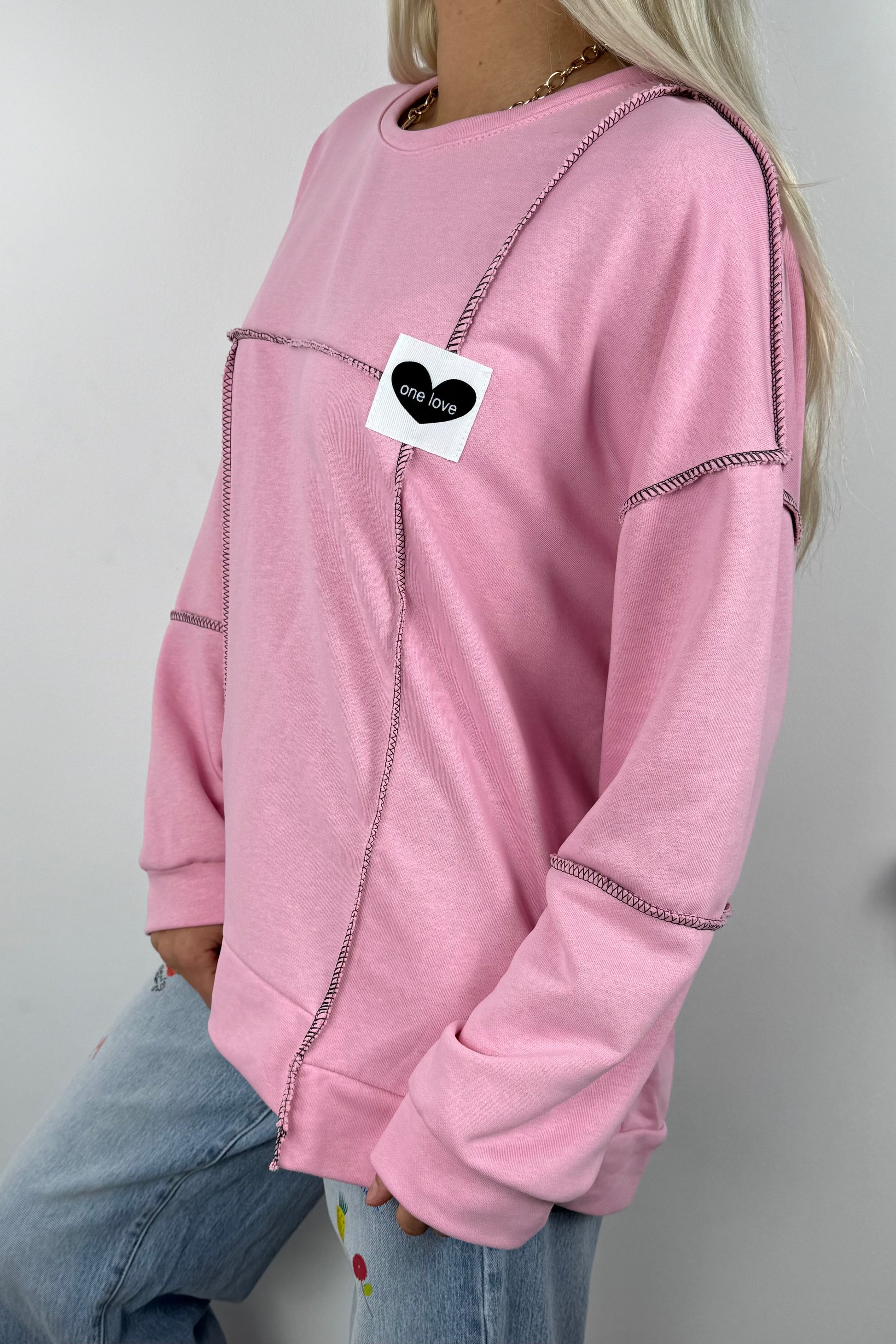 Lässiges Oversize Sweatshirt mit dekorativen Nähten und „One Love“-Patch auf der Brust. Super angenehm zu tragen und ideal für einen modernen, entspannten Look.