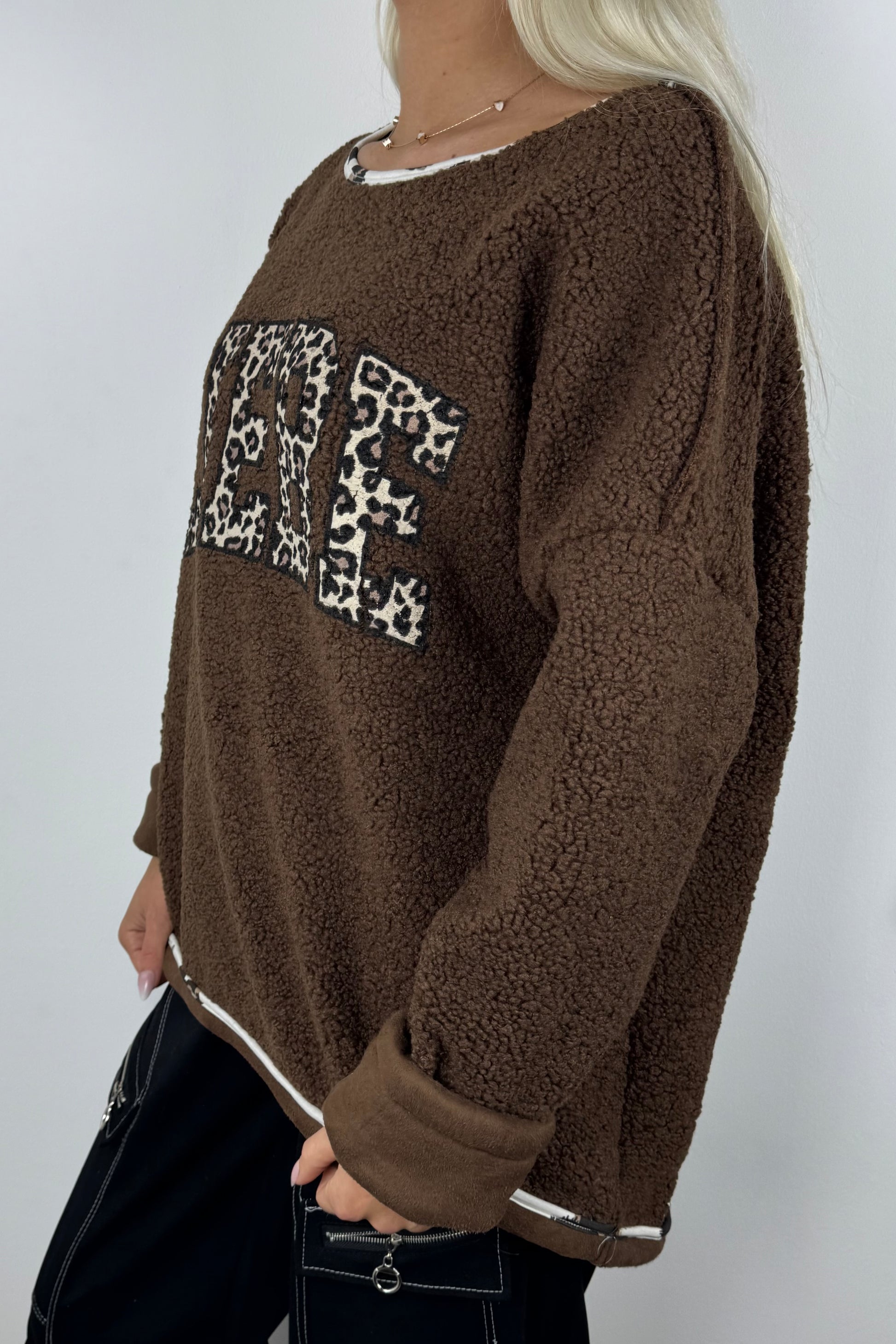 Oversize Teddy Pullover „LIEBE“ –Choco
