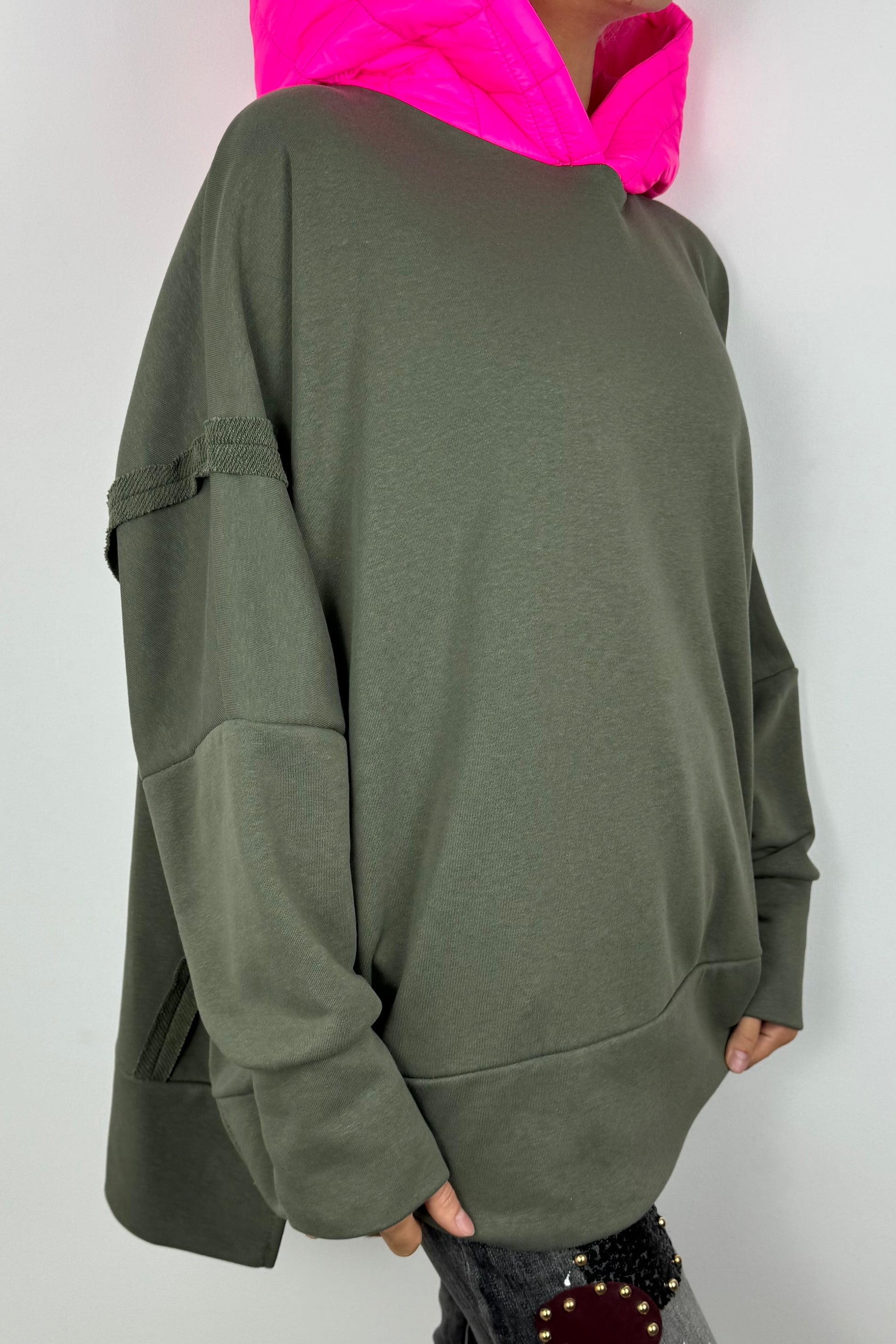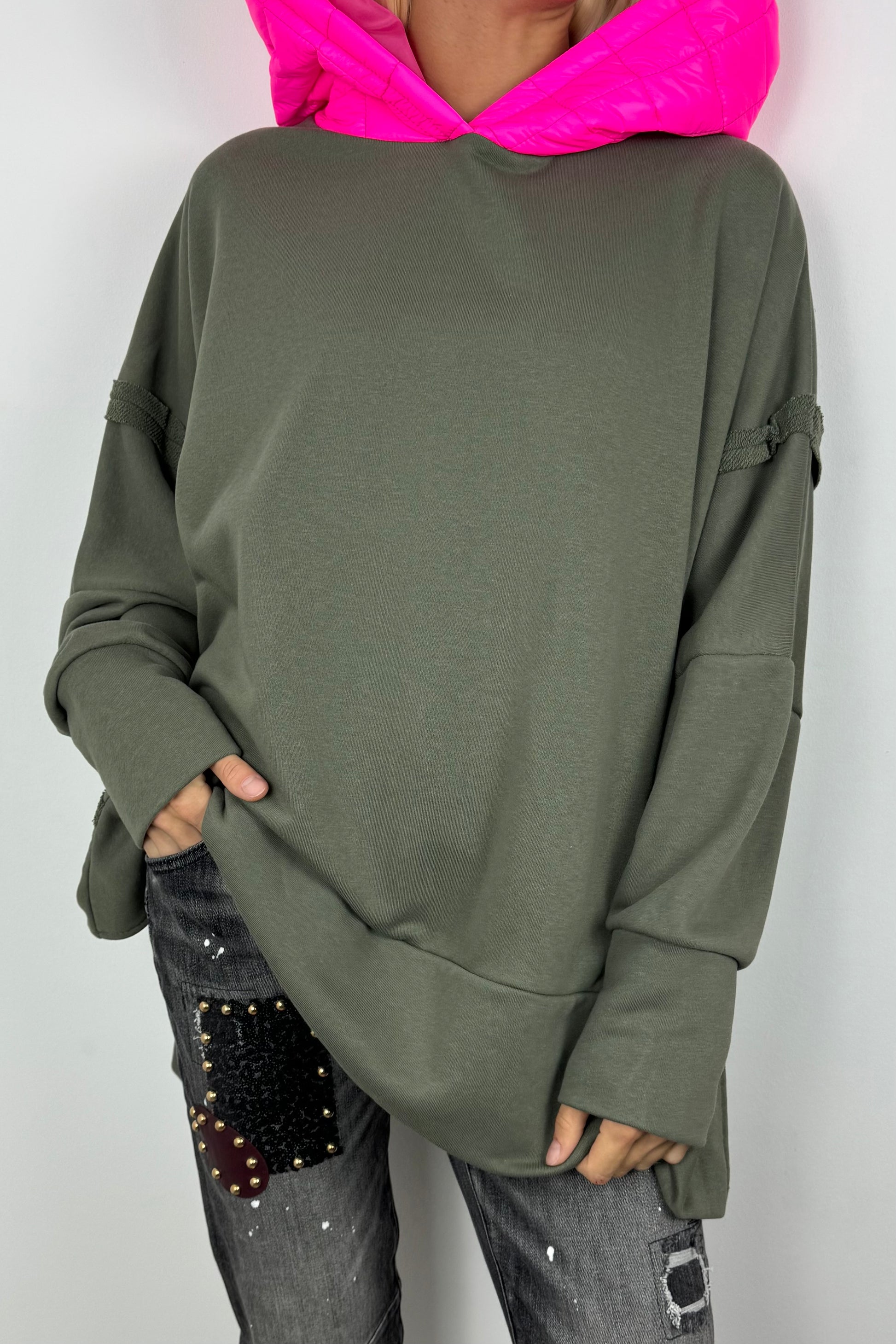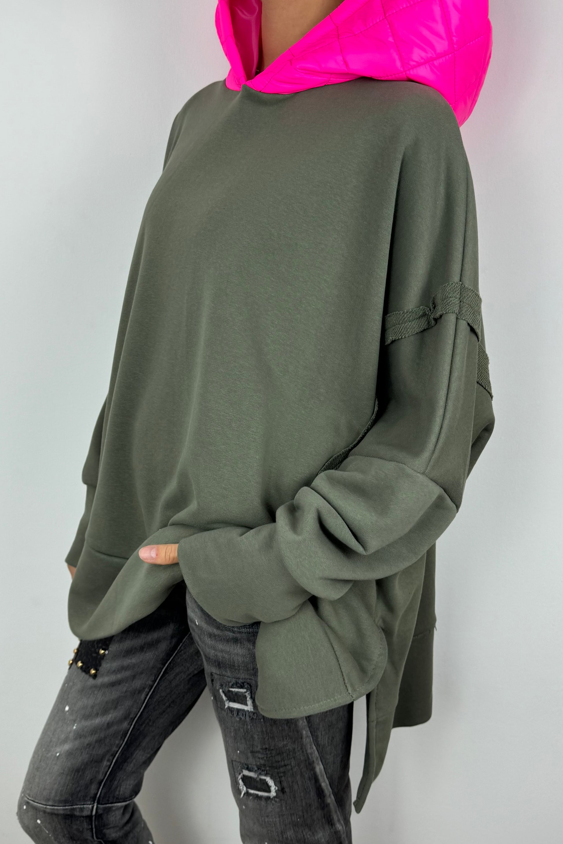 Oversize Hoodie mit Kontrastkapuze –Khaki