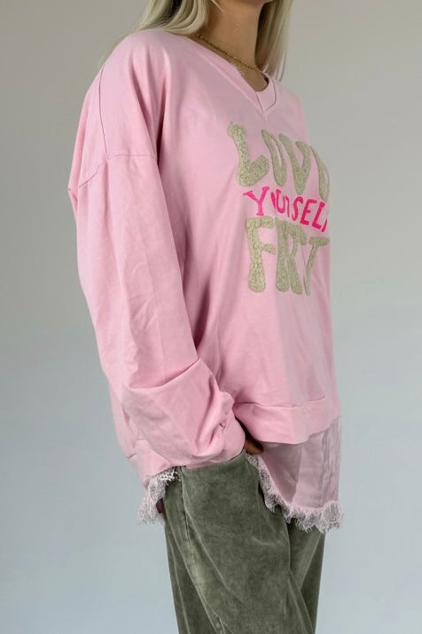 Oversize Shirt „Love Yourself First“-Rosa