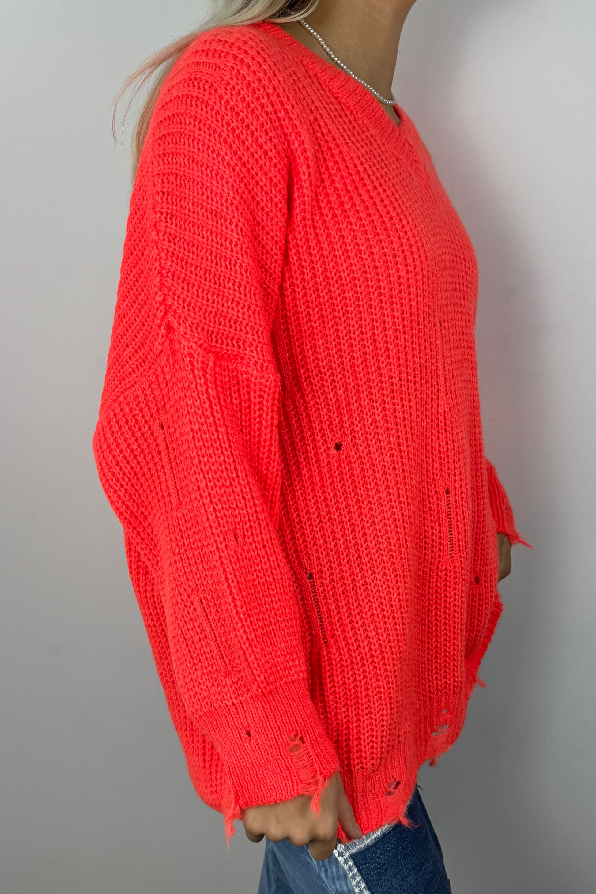 Oversize Strickpullover mit V-Ausschnitt – Orange