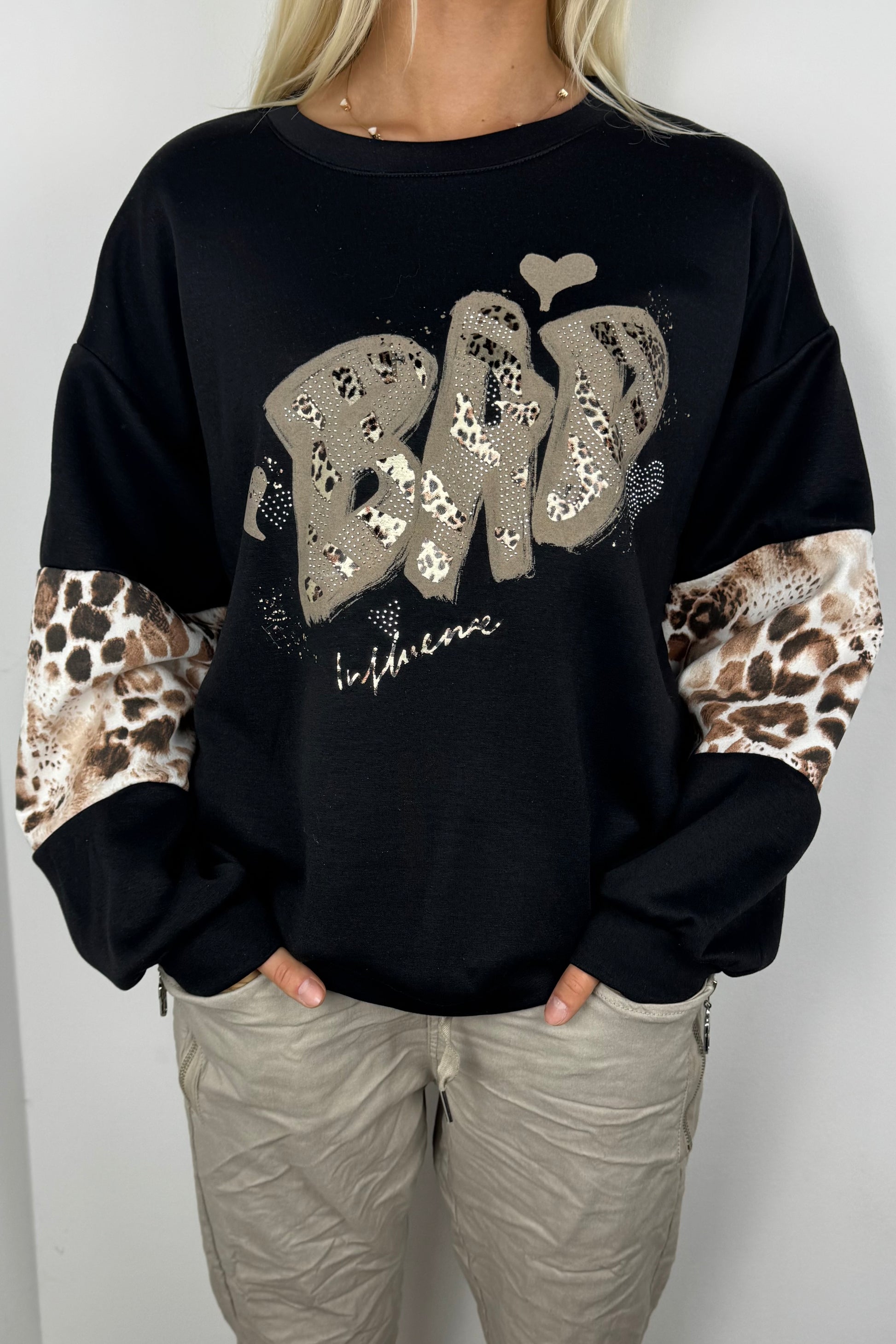 Oversize Sweatshirt mit Print & Animal-Details –Schwarz