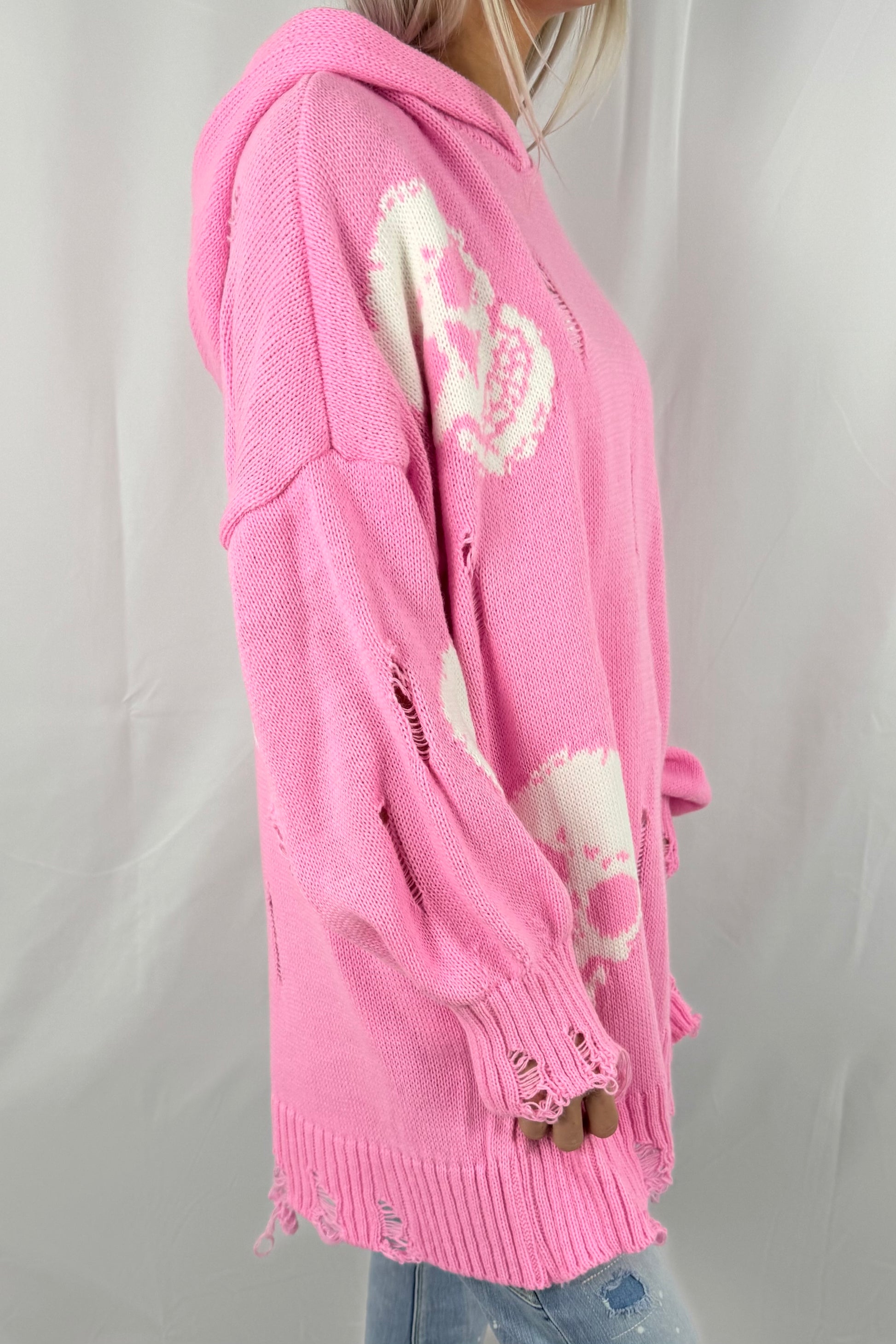 Pullover mit Totenkopf-Print und Kapuze-B-Pink