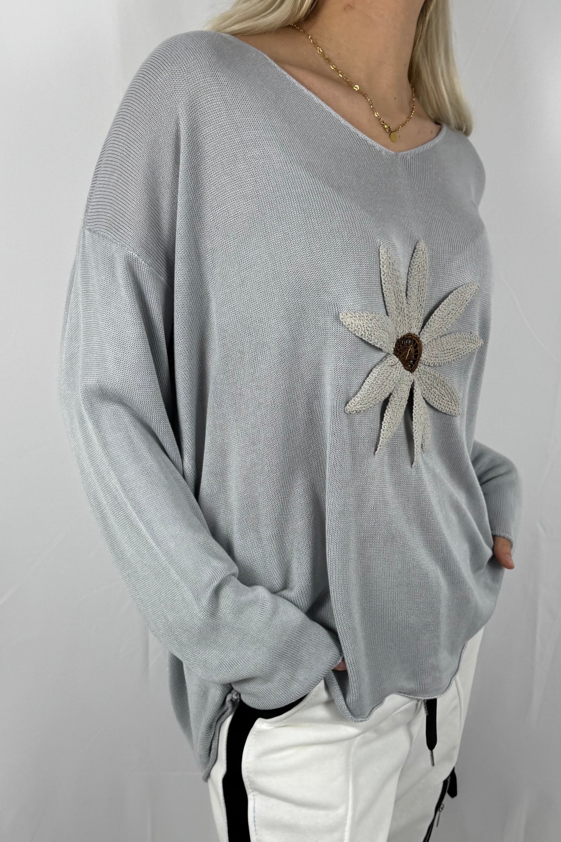 - Florale Applikation vorne
