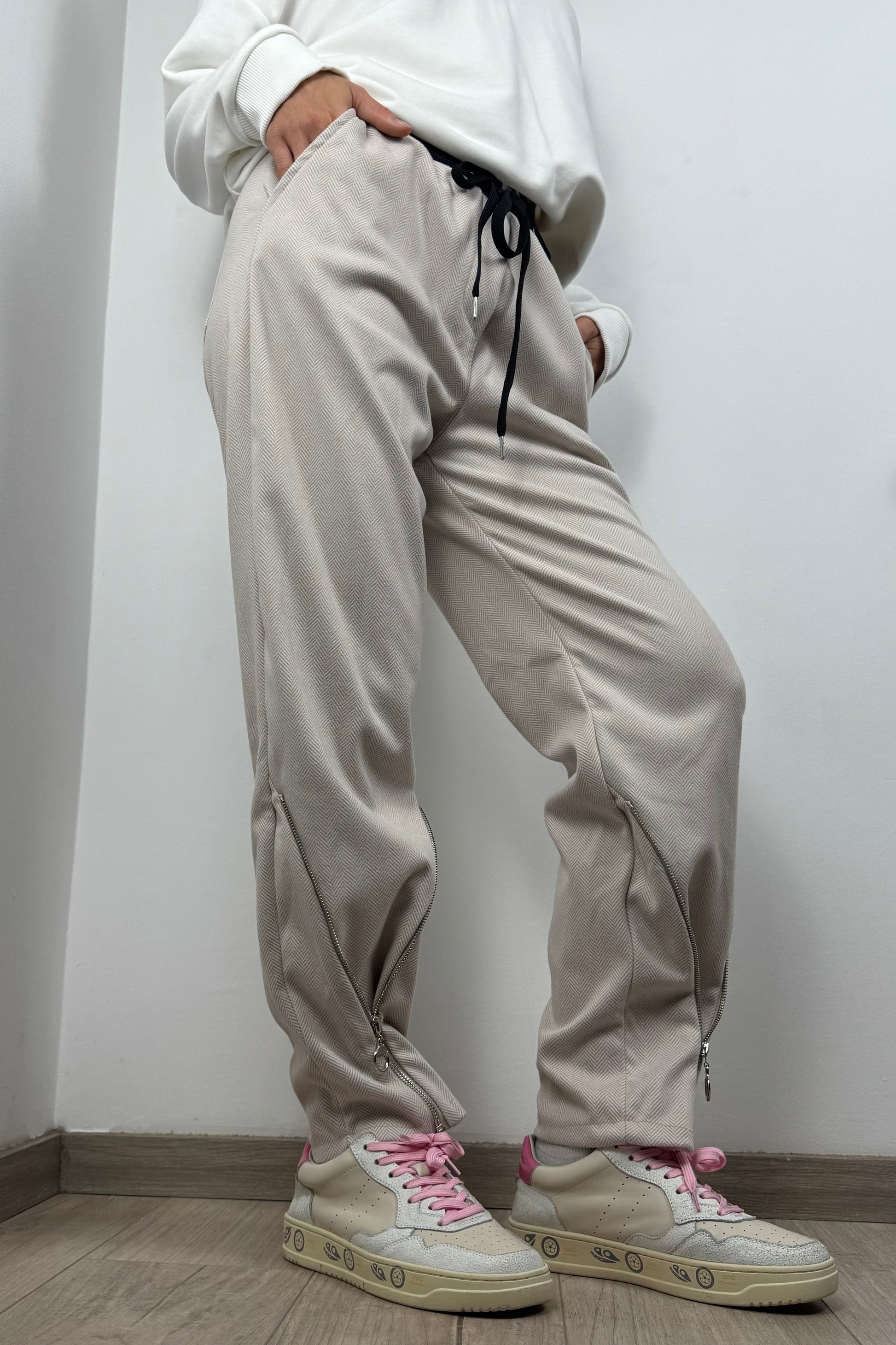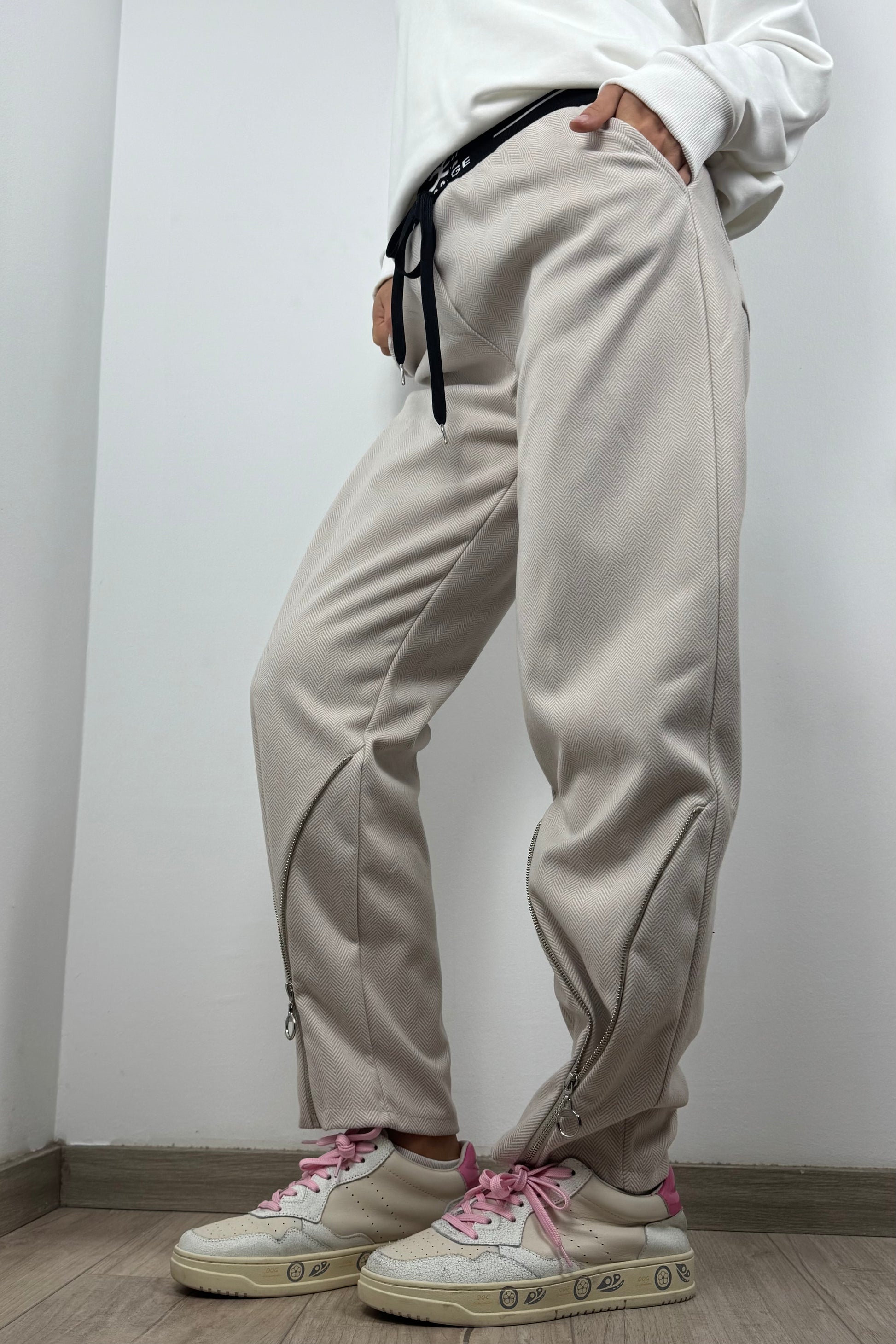 Stylische Damenhose mit Gummibund und Zipper-Details-Beige